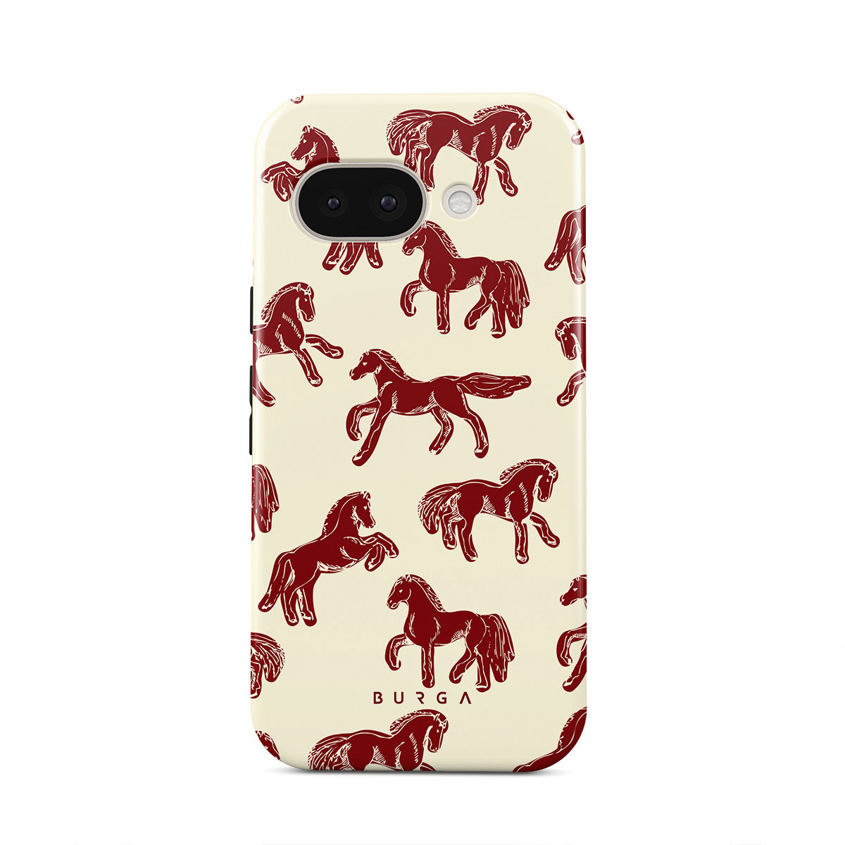It's time to unleash your wild side with the Mustang design. Bold red horses gallop across a nude background, capturing the spirit of untamed adventure. This Google Pixel 9a phone case is perfect for the free-spirited souls ready to ride into the unknown.