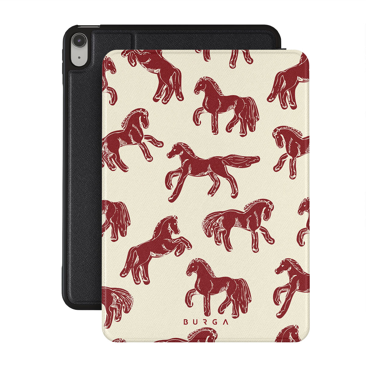 It's time to unleash your wild side with the Mustang design. Bold red horses gallop across a nude background, capturing the spirit of untamed adventure. This iPad 10.9 (A16/10th Gen) folio case is perfect for the free-spirited souls ready to ride into the unknown.