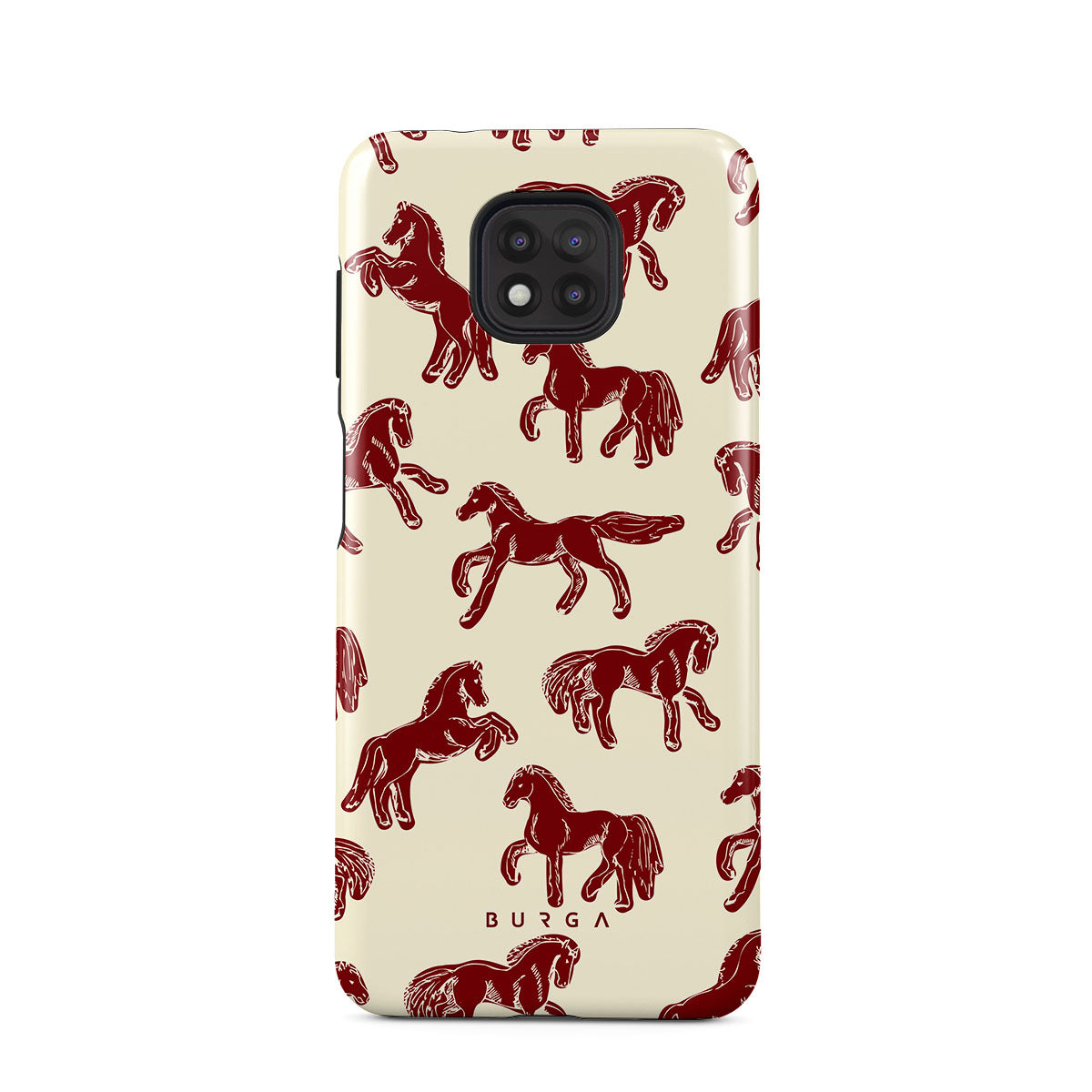 It's time to unleash your wild side with the Mustang design. Bold red horses gallop across a nude background, capturing the spirit of untamed adventure. This Motorola Moto G Power 2021 phone case is perfect for the free-spirited souls ready to ride into the unknown.