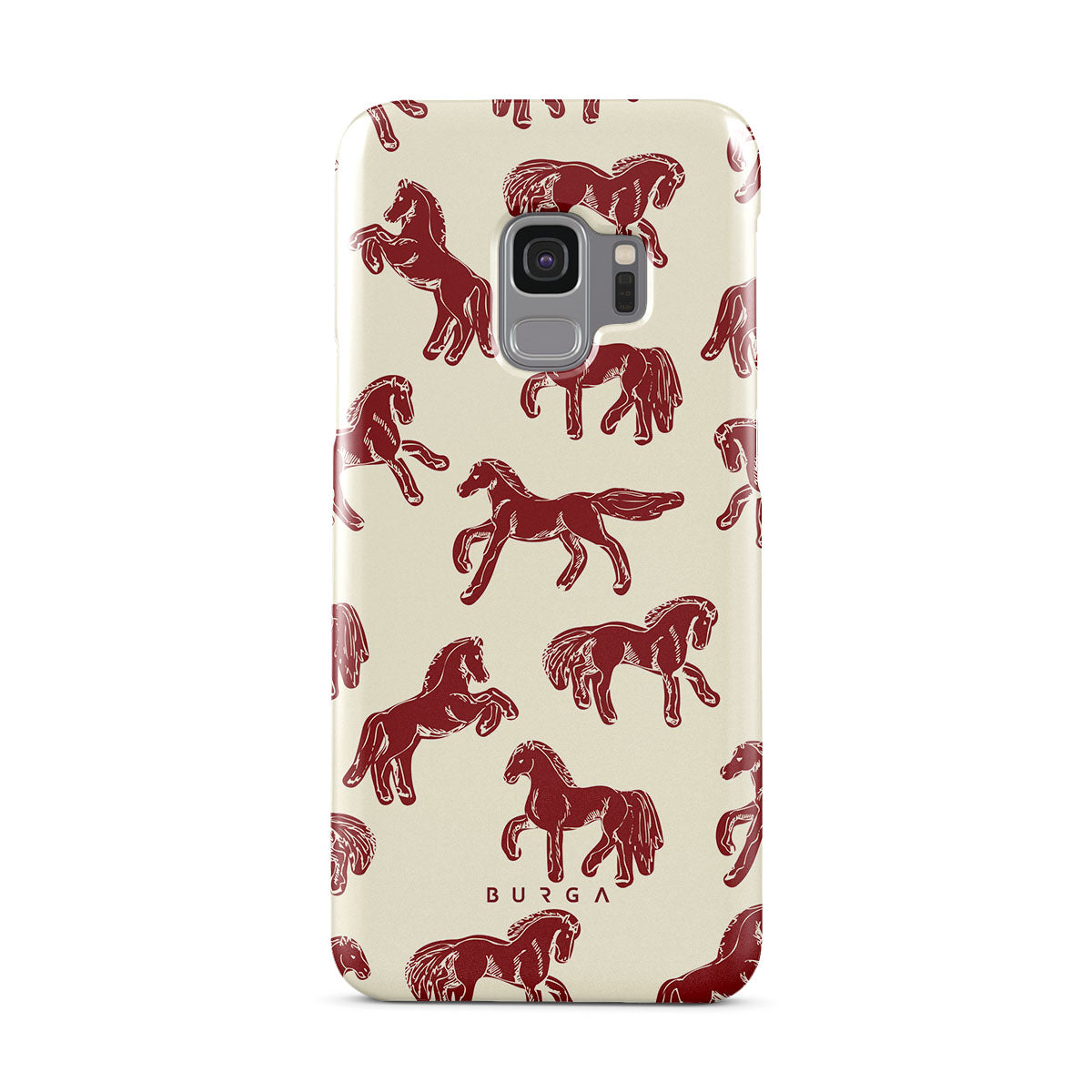 It's time to unleash your wild side with the Mustang design. Bold red horses gallop across a nude background, capturing the spirit of untamed adventure. This Samsung Galaxy S9 phone case is perfect for the free-spirited souls ready to ride into the unknown.