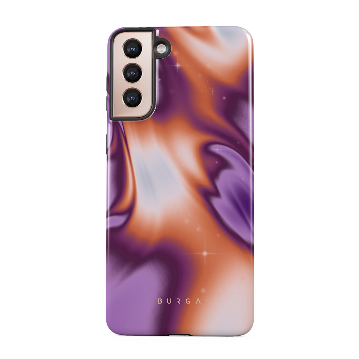 Dip into the Nebula, where runway glamour collides with cosmic seduction. Purple flames play upon a bright canvas, showcasing the fiery dance of distant galaxies. Our Nebula Samsung Galaxy S21 Plus phone case is a piece of the universe, sparking conversations with its vibrant, otherworldly beauty.