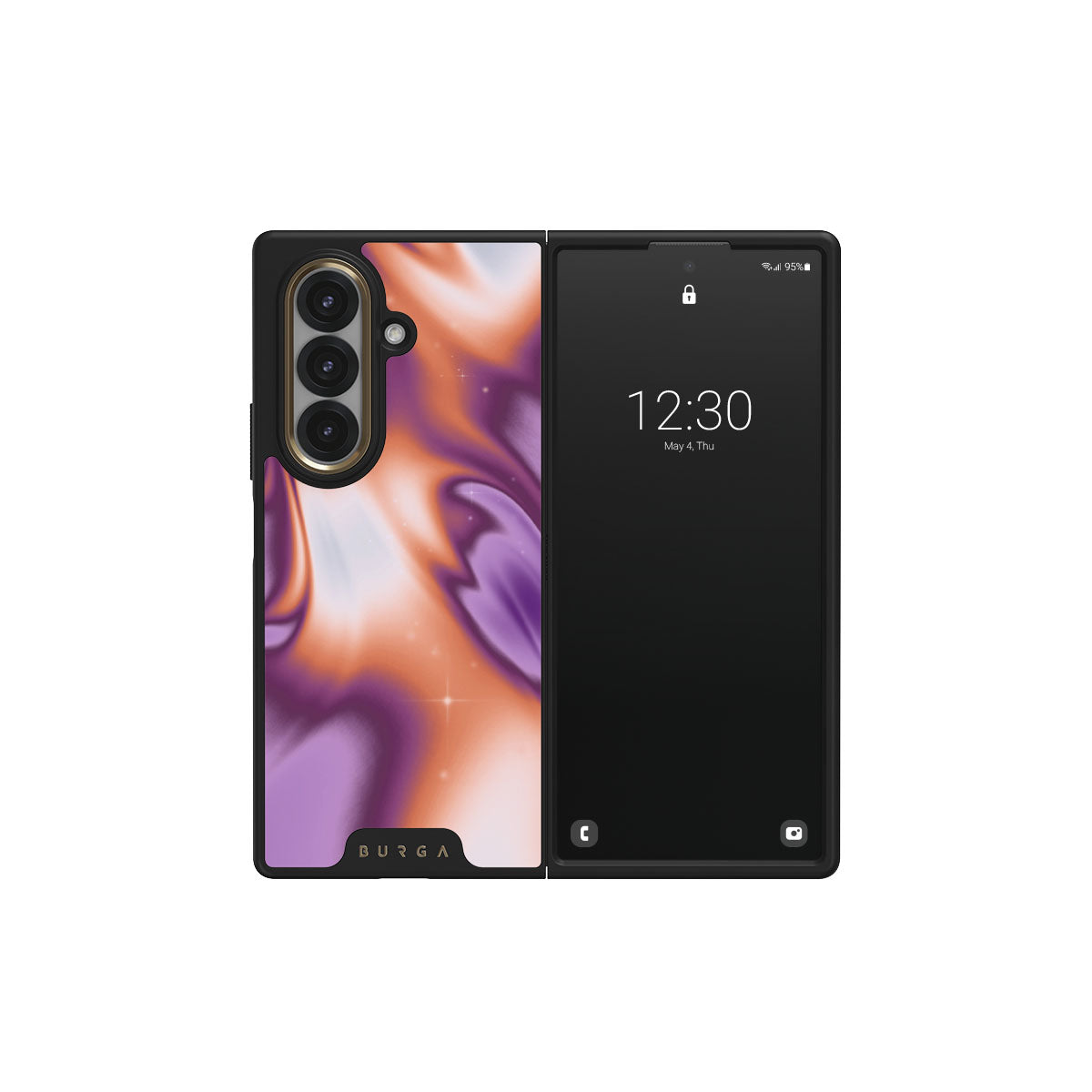 Dip into the Nebula, where runway glamour collides with cosmic seduction. Purple flames play upon a bright canvas, showcasing the fiery dance of distant galaxies. Our Nebula Samsung Galaxy Z Fold 7 phone case is a piece of the universe, sparking conversations with its vibrant, otherworldly beauty.