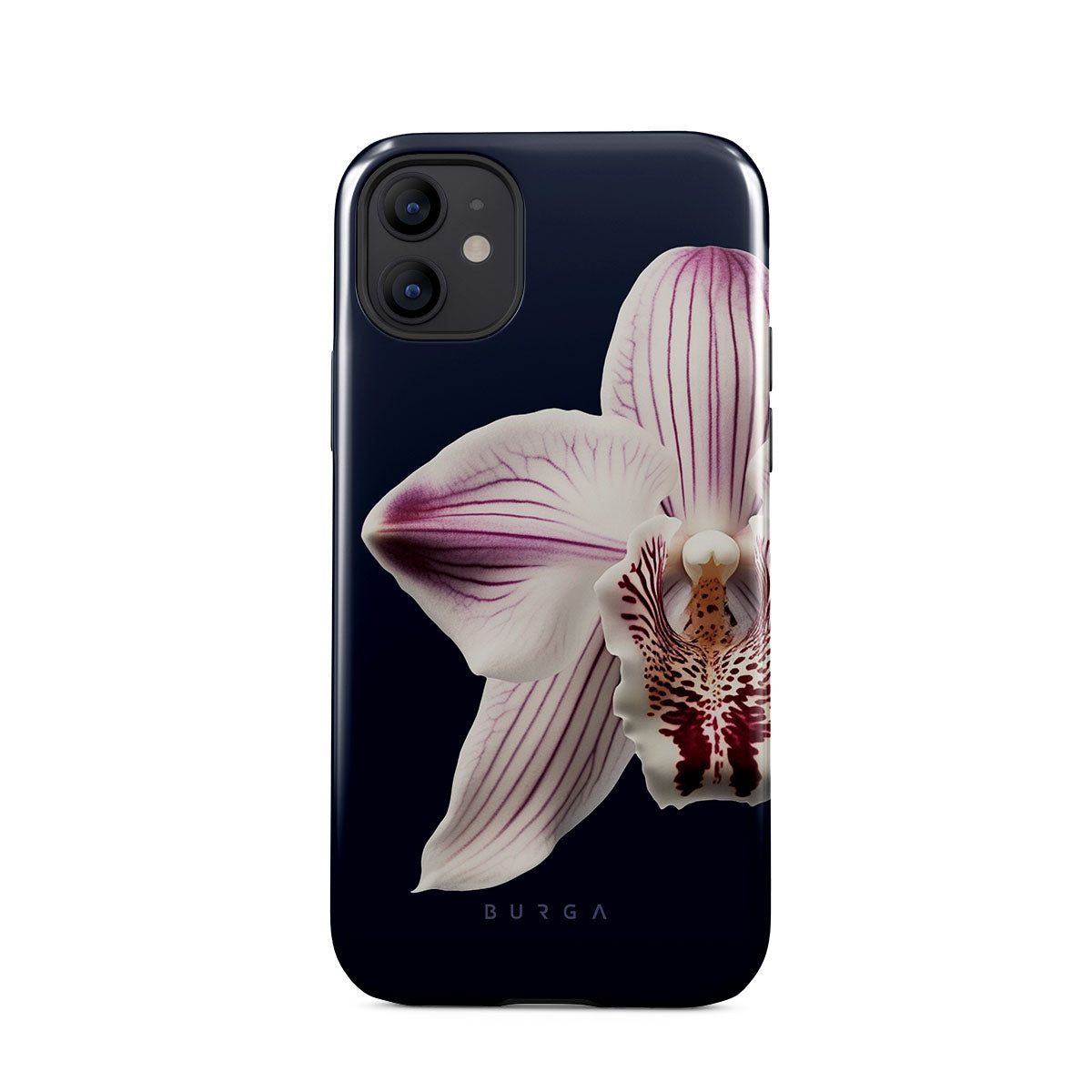 The white orchid blooms boldly upon a night sky blue, a beacon of clarity in the darkness. Our Nectar iPhone 12 phone case design speaks to the soul's desire to find light within, to illuminate the hidden paths of self-discovery that only reveal themselves under the cloak of introspection.