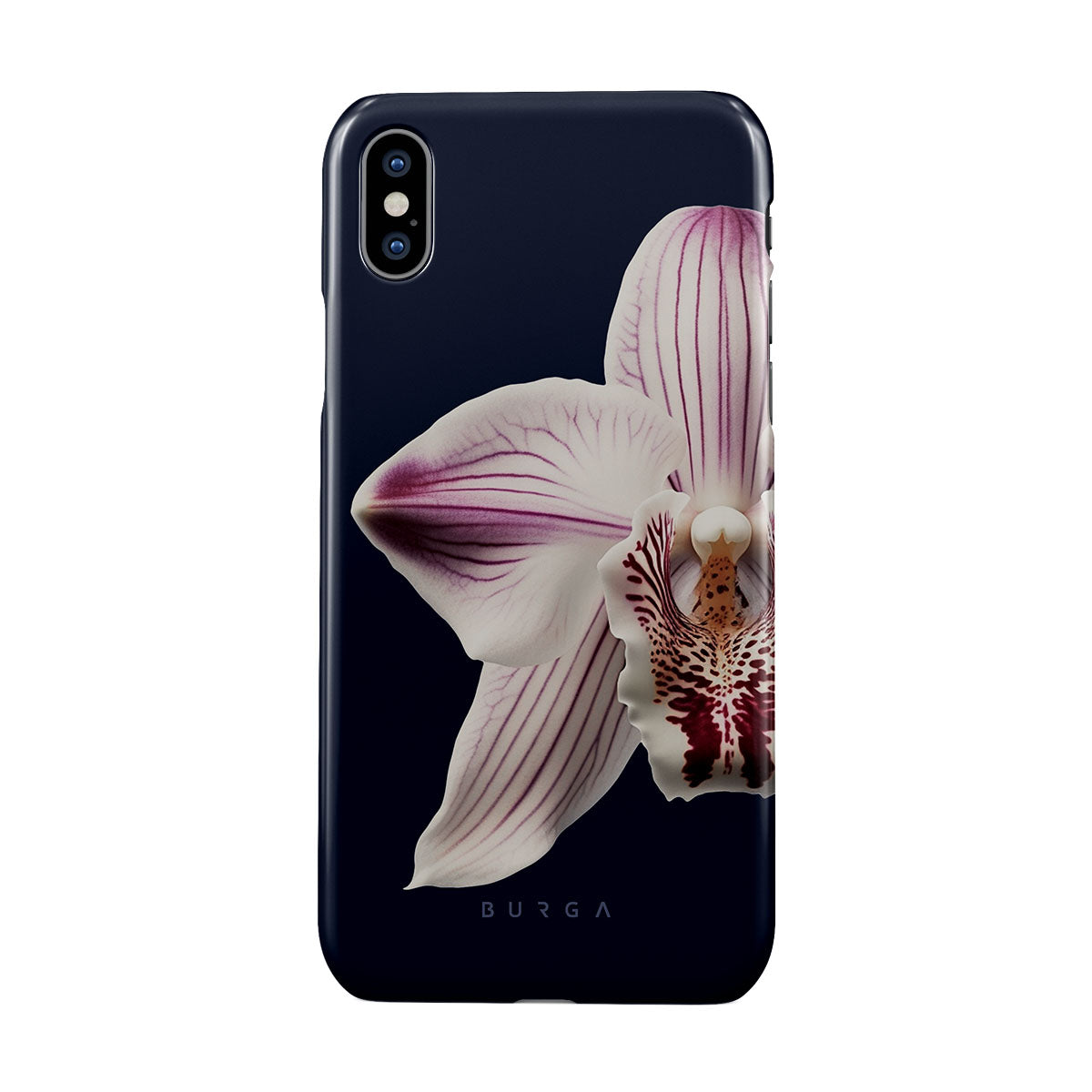 The white orchid blooms boldly upon a night sky blue, a beacon of clarity in the darkness. Our Nectar iPhone XS Max phone case design speaks to the soul's desire to find light within, to illuminate the hidden paths of self-discovery that only reveal themselves under the cloak of introspection.