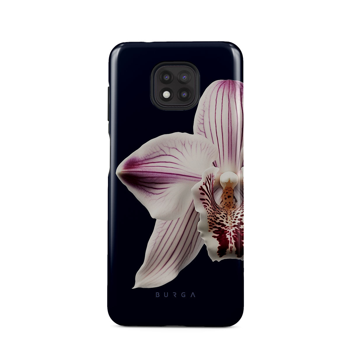 The white orchid blooms boldly upon a night sky blue, a beacon of clarity in the darkness. Our Nectar Motorola Moto G Power 2021 phone case design speaks to the soul's desire to find light within, to illuminate the hidden paths of self-discovery that only reveal themselves under the cloak of introspection.