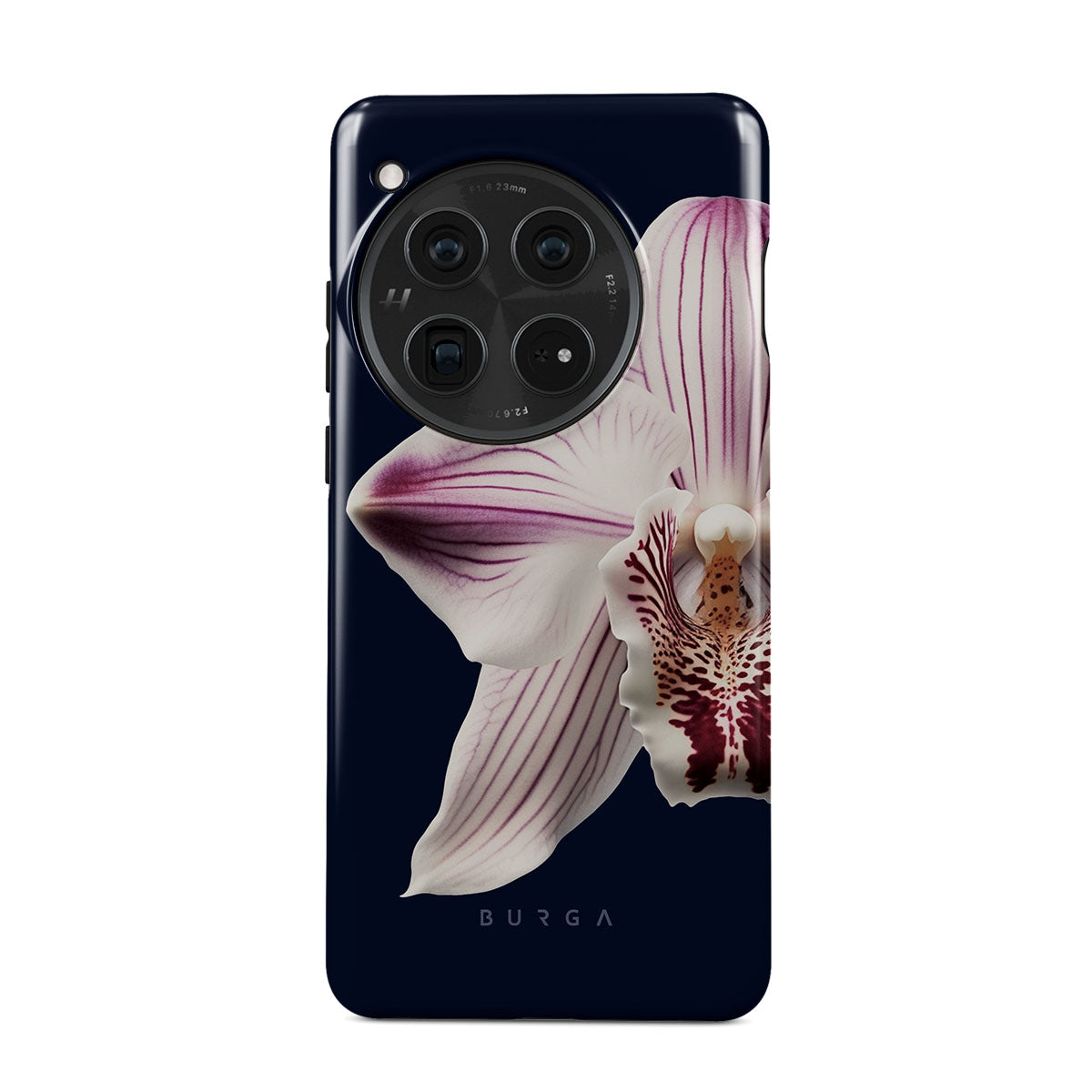 The white orchid blooms boldly upon a night sky blue, a beacon of clarity in the darkness. Our Nectar OnePlus 12 phone case design speaks to the soul's desire to find light within, to illuminate the hidden paths of self-discovery that only reveal themselves under the cloak of introspection.