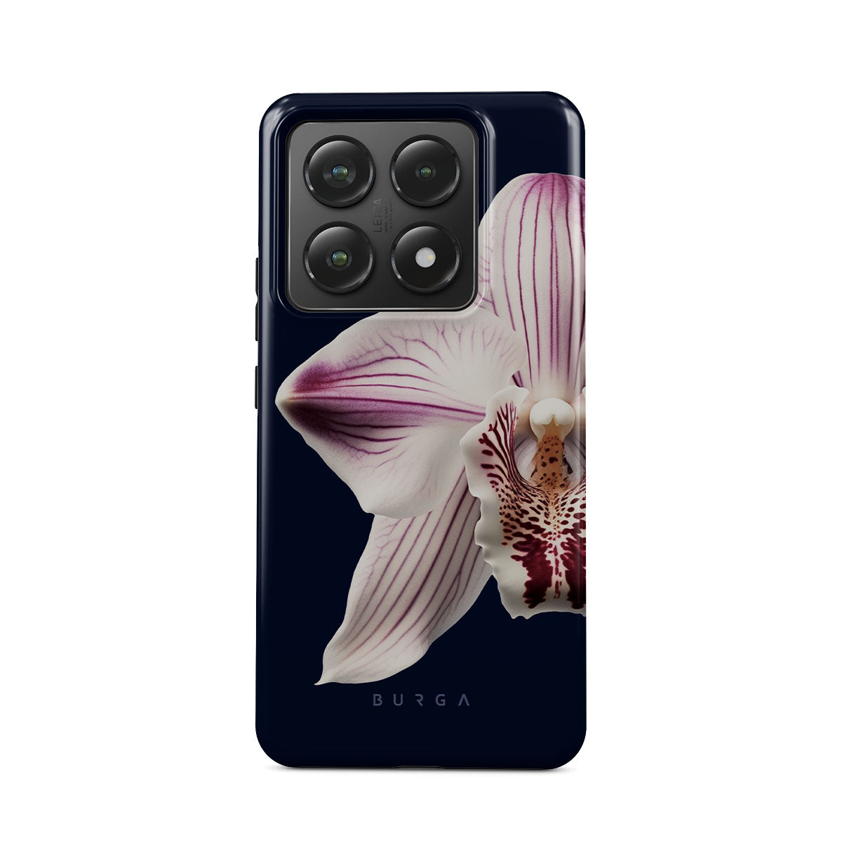 The white orchid blooms boldly upon a night sky blue, a beacon of clarity in the darkness. Our Nectar Xiaomi 14T Pro phone case design speaks to the soul's desire to find light within, to illuminate the hidden paths of self-discovery that only reveal themselves under the cloak of introspection.