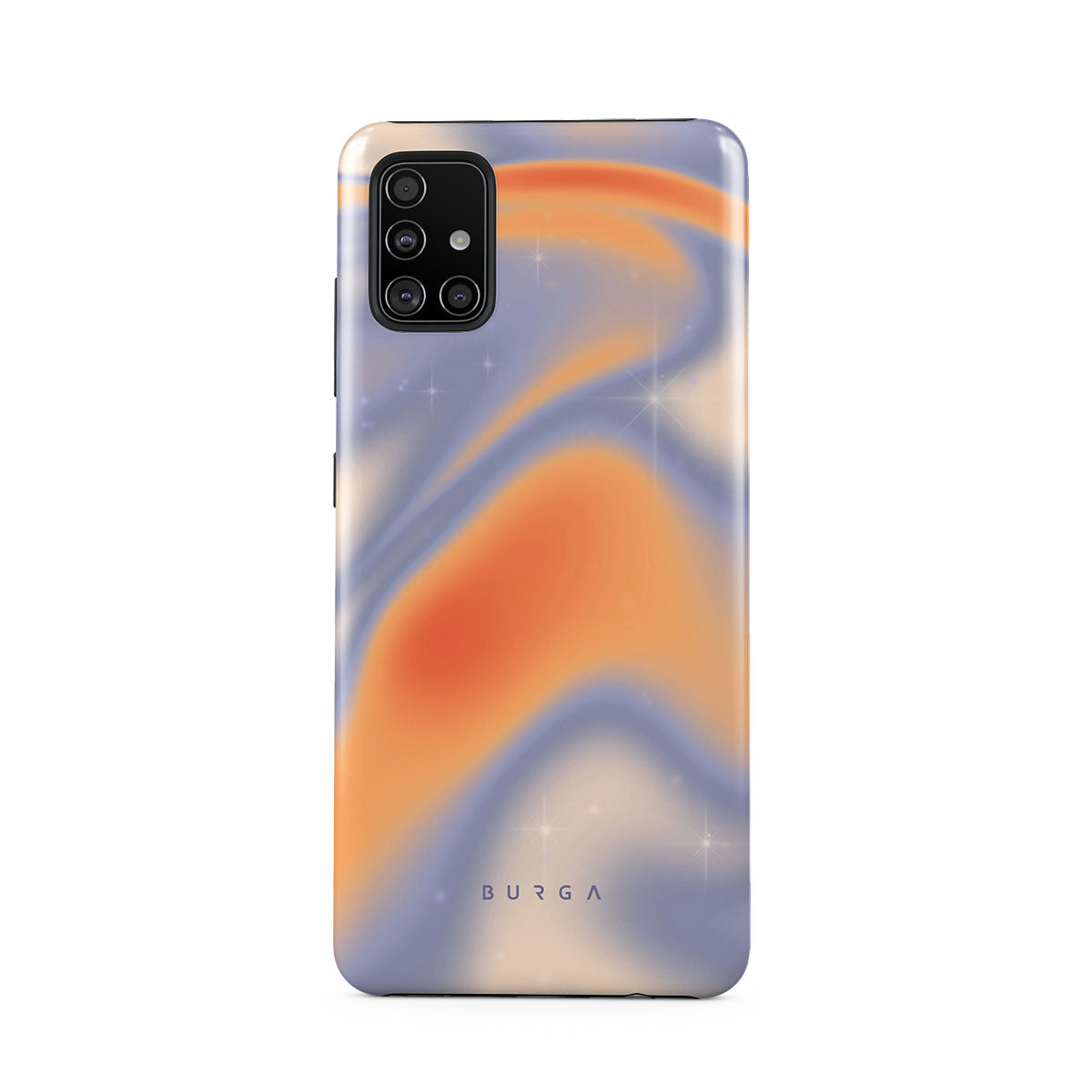 Magnetic gray rays encounter fiery orange bursts, merging nature's drama with high-fashion flair. In meteorology, a nimbus cloud heralds rain, symbolizing rebirth and fresh starts. Drawing inspiration from this, our Nimbus Samsung Galaxy A51 4G phone case design ensures you are the center of attention—wherever you go.