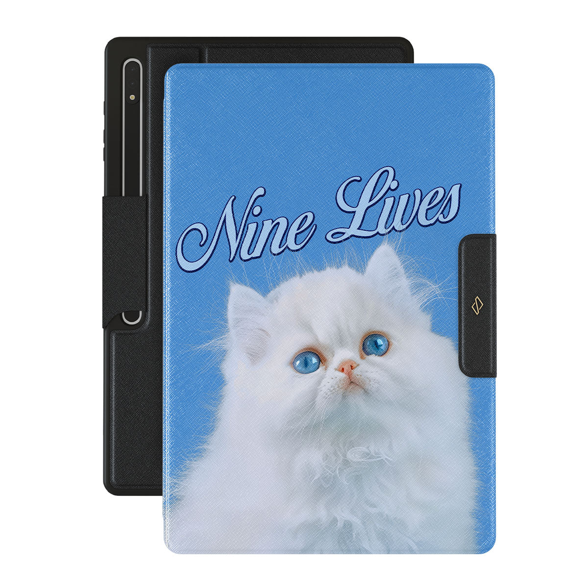 Channel your inner diva with our Nine Lives Samsung Galaxy Tab S8 Ultra folio case. It's luxe, plush, and purr-fectly fabulous, with just enough fluff to show you mean business.