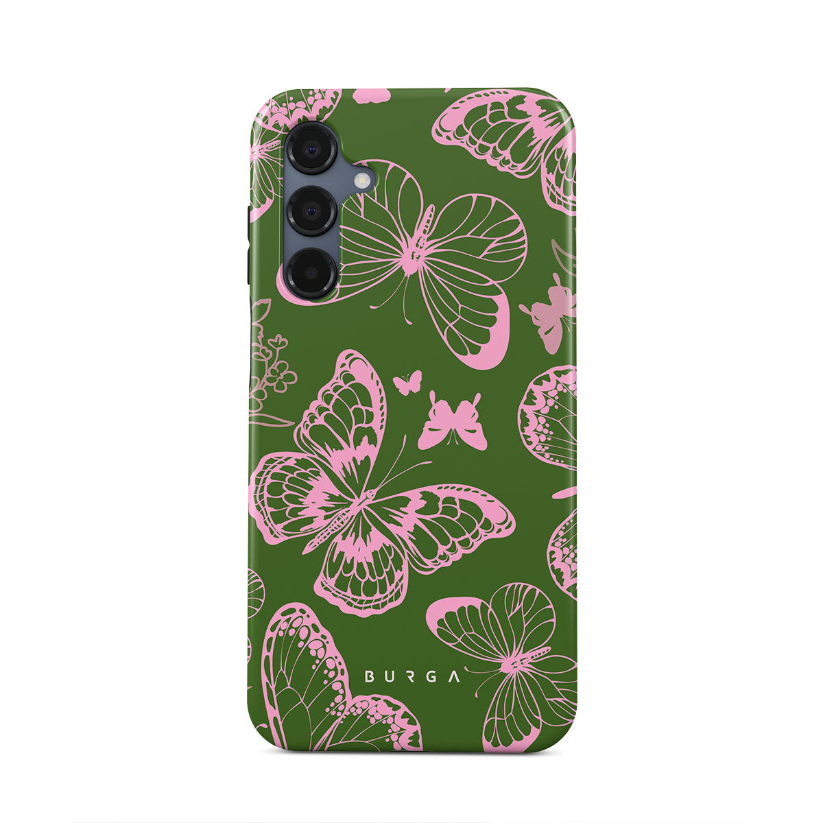 A retro-inspired masterpiece, this Samsung Galaxy A16 phone case features a delightful butterfly print that's sure to take you on a trip down memory lane. Inspired by the carefree spirit of the groovy era, this case reminds you to live your best life with No Regrets and embrace every moment. With this enchanting case design, you'll be ready to spread your wings and fly high, with nothing holding you back.
