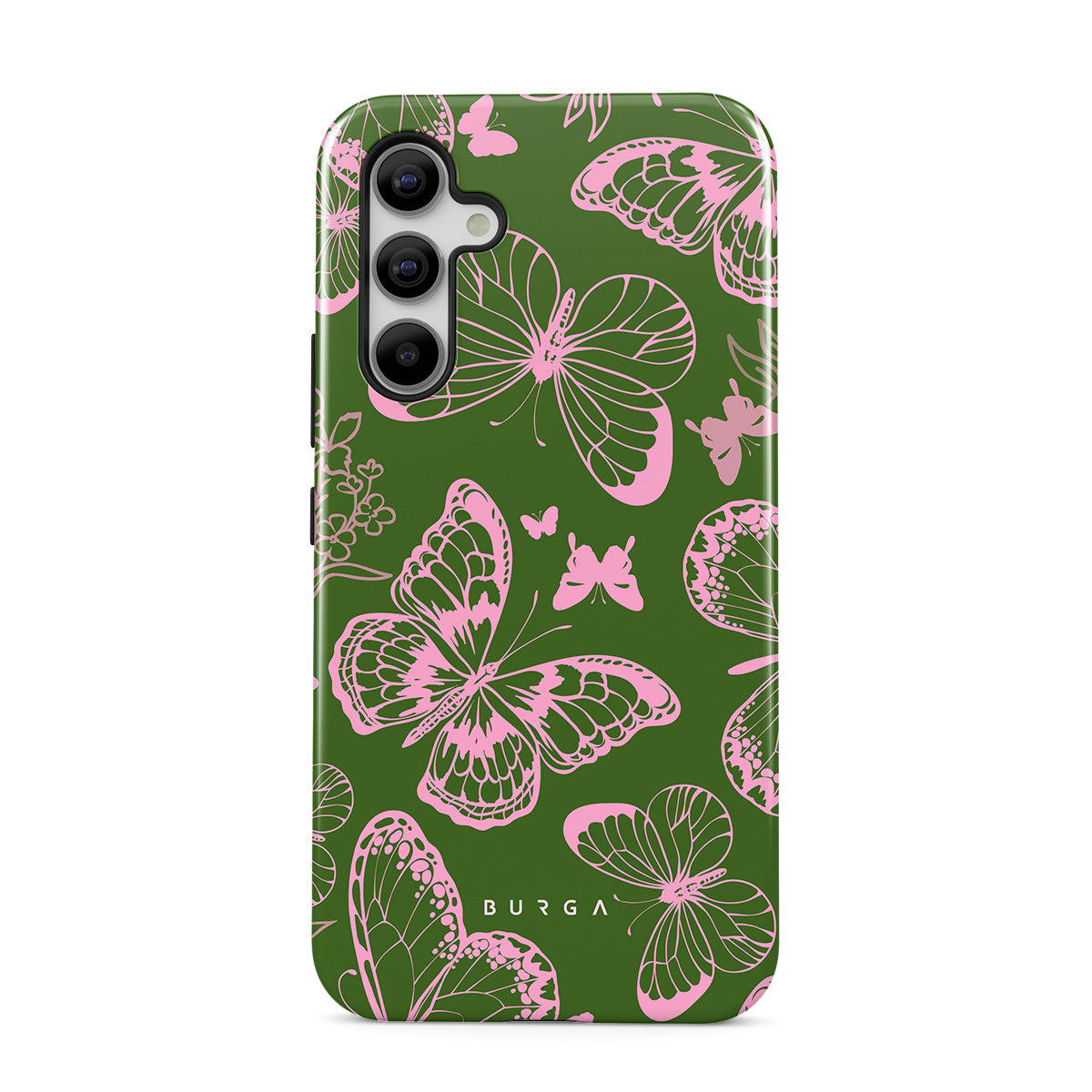 A retro-inspired masterpiece, this Samsung Galaxy A54 phone case features a delightful butterfly print that's sure to take you on a trip down memory lane. Inspired by the carefree spirit of the groovy era, this case reminds you to live your best life with No Regrets and embrace every moment. With this enchanting case design, you'll be ready to spread your wings and fly high, with nothing holding you back.