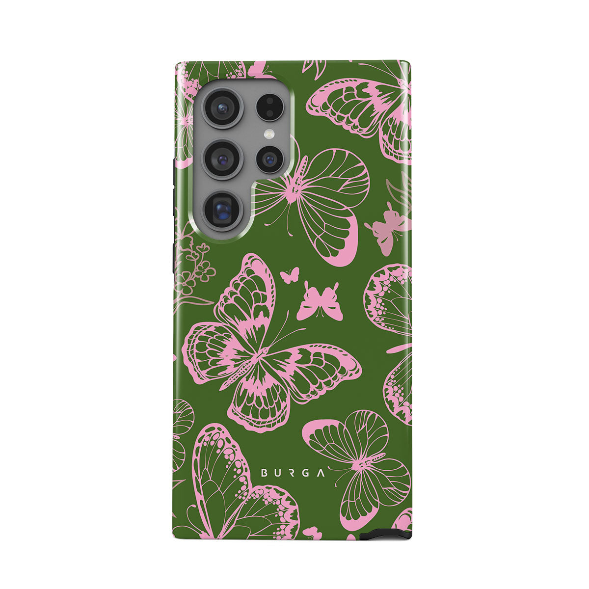 A retro-inspired masterpiece, this Samsung Galaxy S24 Ultra phone case features a delightful butterfly print that's sure to take you on a trip down memory lane. Inspired by the carefree spirit of the groovy era, this case reminds you to live your best life with No Regrets and embrace every moment. With this enchanting case design, you'll be ready to spread your wings and fly high, with nothing holding you back.
