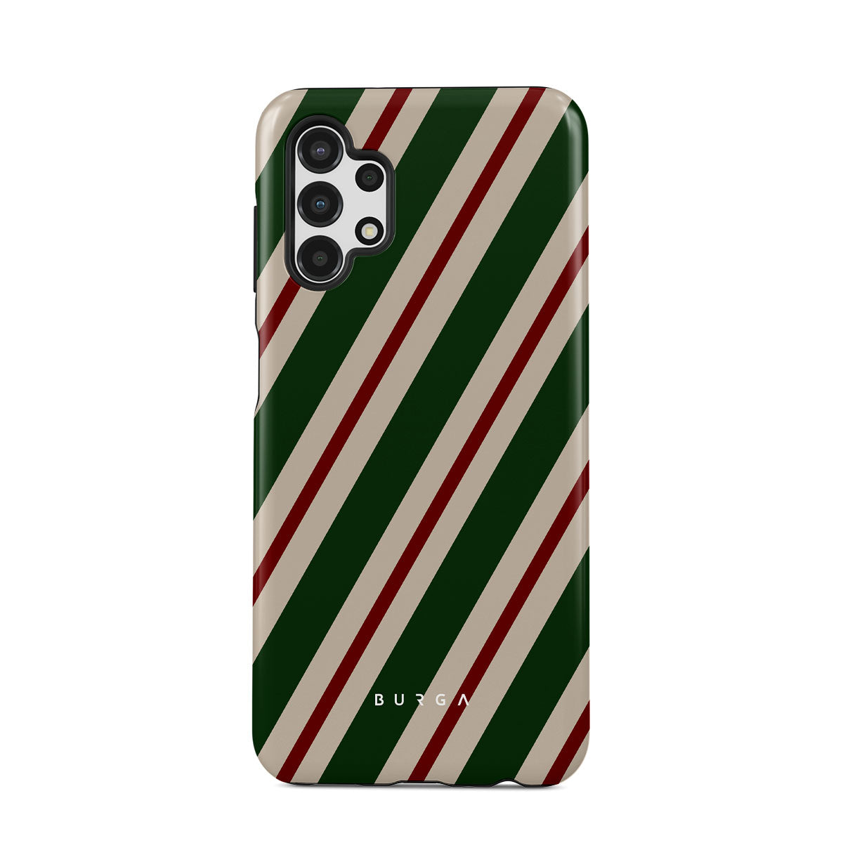 A joyful design that screams holiday spirit. Our North Pole Samsung Galaxy A13 4G Case phone case transports you straight to Santa's workshop. Bold green, red, and white stripes echo the joy and laughter of elves preparing for the festive season.