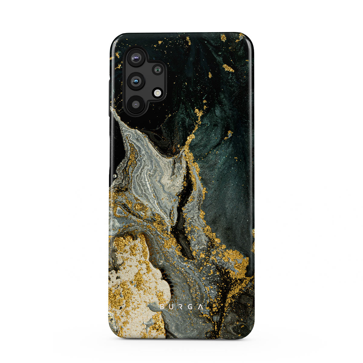 Our cute marble Northern Lights Samsung Galaxy A32 5G phone case showcases a combination of moss green shades in a marble pattern enriched with golden specks. The asymmetrical design reminding of a star map will add a touch of luxury and mystery to every accessory lover's collection.