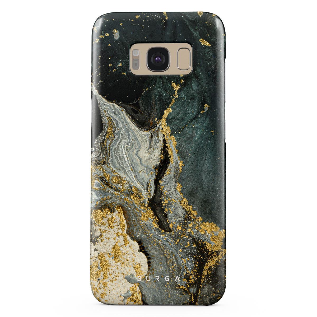 Our cute marble Northern Lights Samsung Galaxy S8 phone case showcases a combination of moss green shades in a marble pattern enriched with golden specks. The asymmetrical design reminding of a star map will add a touch of luxury and mystery to every accessory lover's collection.
