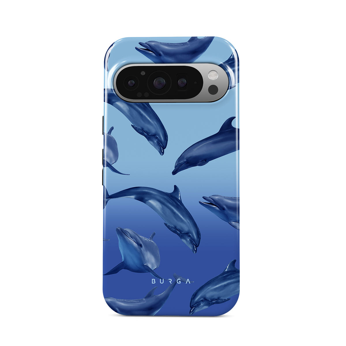 Our Ocean Cowboy Google Pixel 9 Pro XL phone case features majestic dolphins soaring across a sapphire ocean, symbolizing the untamed beauty and mystery of the deep blue. It's a call to the wild, right in your hands.