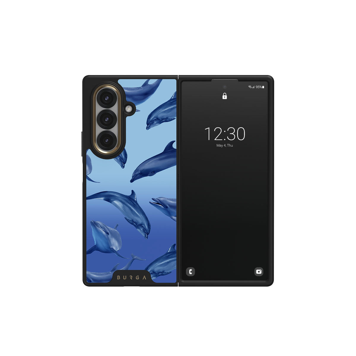 Our Ocean Cowboy Samsung Galaxy Z Fold 7 phone case features majestic dolphins soaring across a sapphire ocean, symbolizing the untamed beauty and mystery of the deep blue. It's a call to the wild, right in your hands.