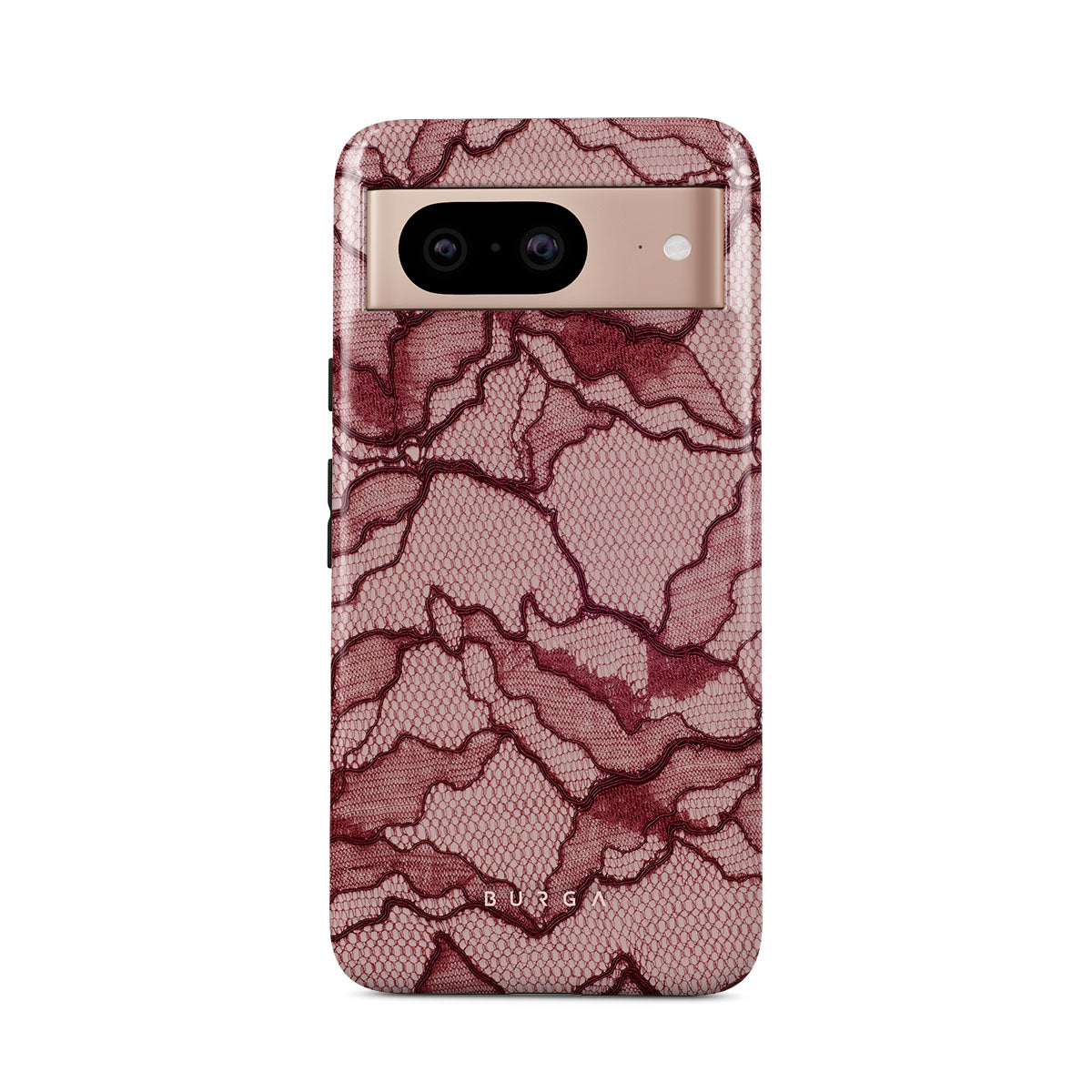 Channel your inner power with our Office Siren Google Pixel 8 phone case design. A soft rosé backdrop and dark pink lace blend elegance and boldness, perfect for those who make quiet yet undeniable statements with confidence.