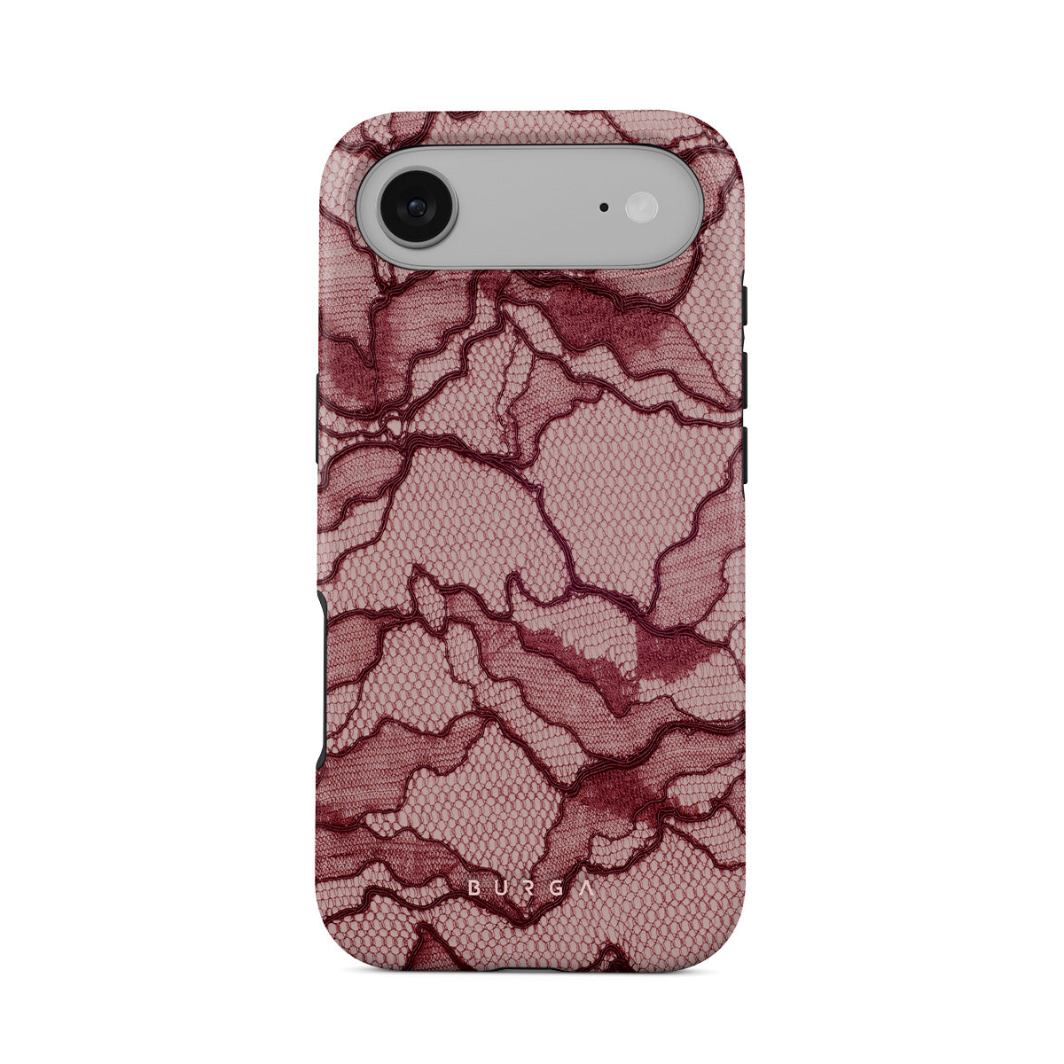 Channel your inner power with our Office Siren iPhone Air phone case design. A soft rosé backdrop and dark pink lace blend elegance and boldness, perfect for those who make quiet yet undeniable statements with confidence.
