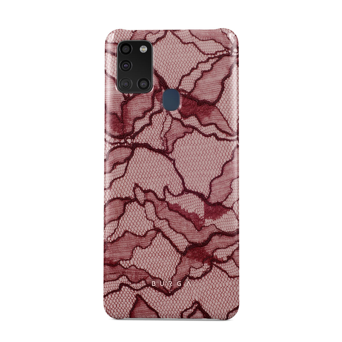 Channel your inner power with our Office Siren Samsung Galaxy A21s 4G phone case design. A soft rosé backdrop and dark pink lace blend elegance and boldness, perfect for those who make quiet yet undeniable statements with confidence.