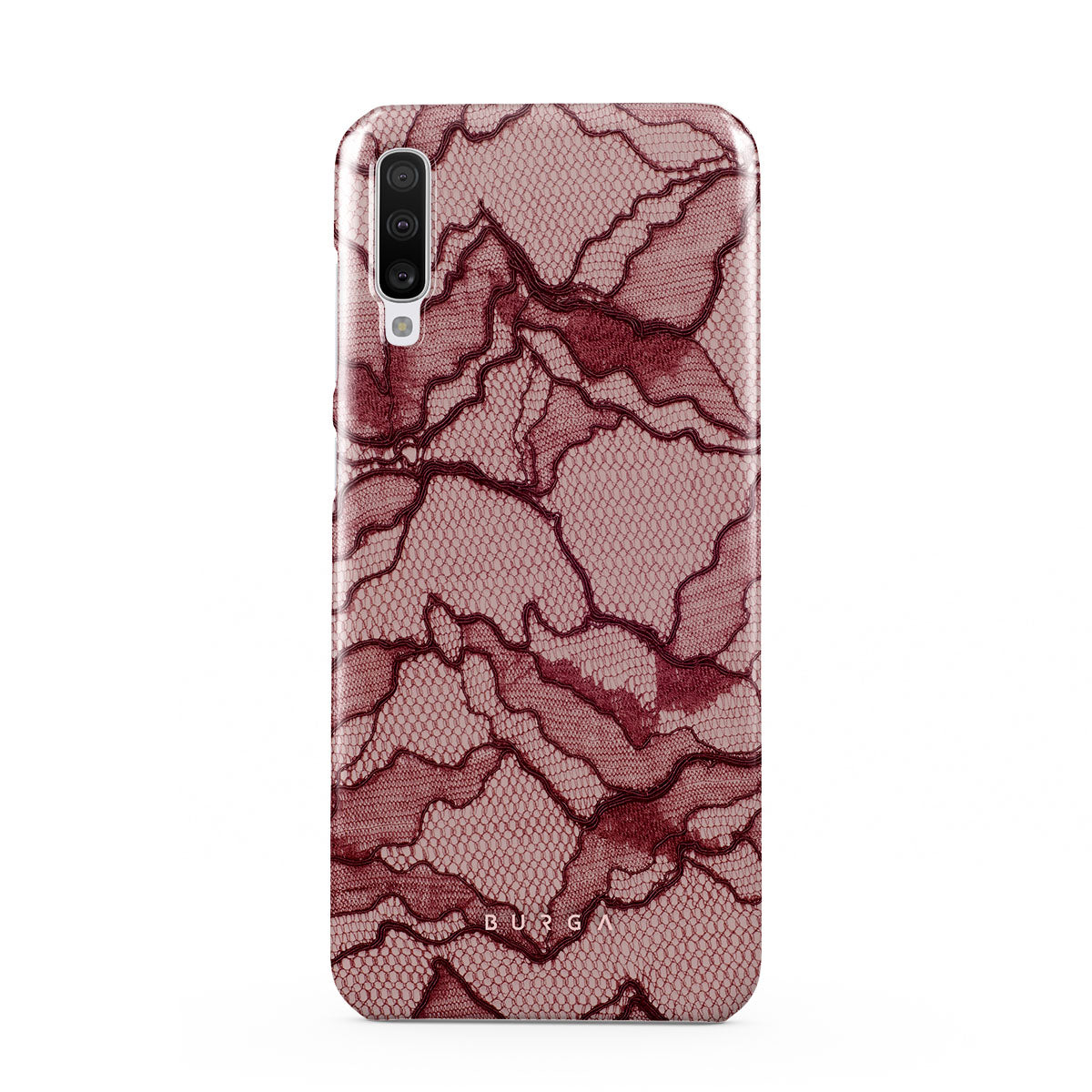 Channel your inner power with our Office Siren Samsung Galaxy A70 phone case design. A soft rosé backdrop and dark pink lace blend elegance and boldness, perfect for those who make quiet yet undeniable statements with confidence.