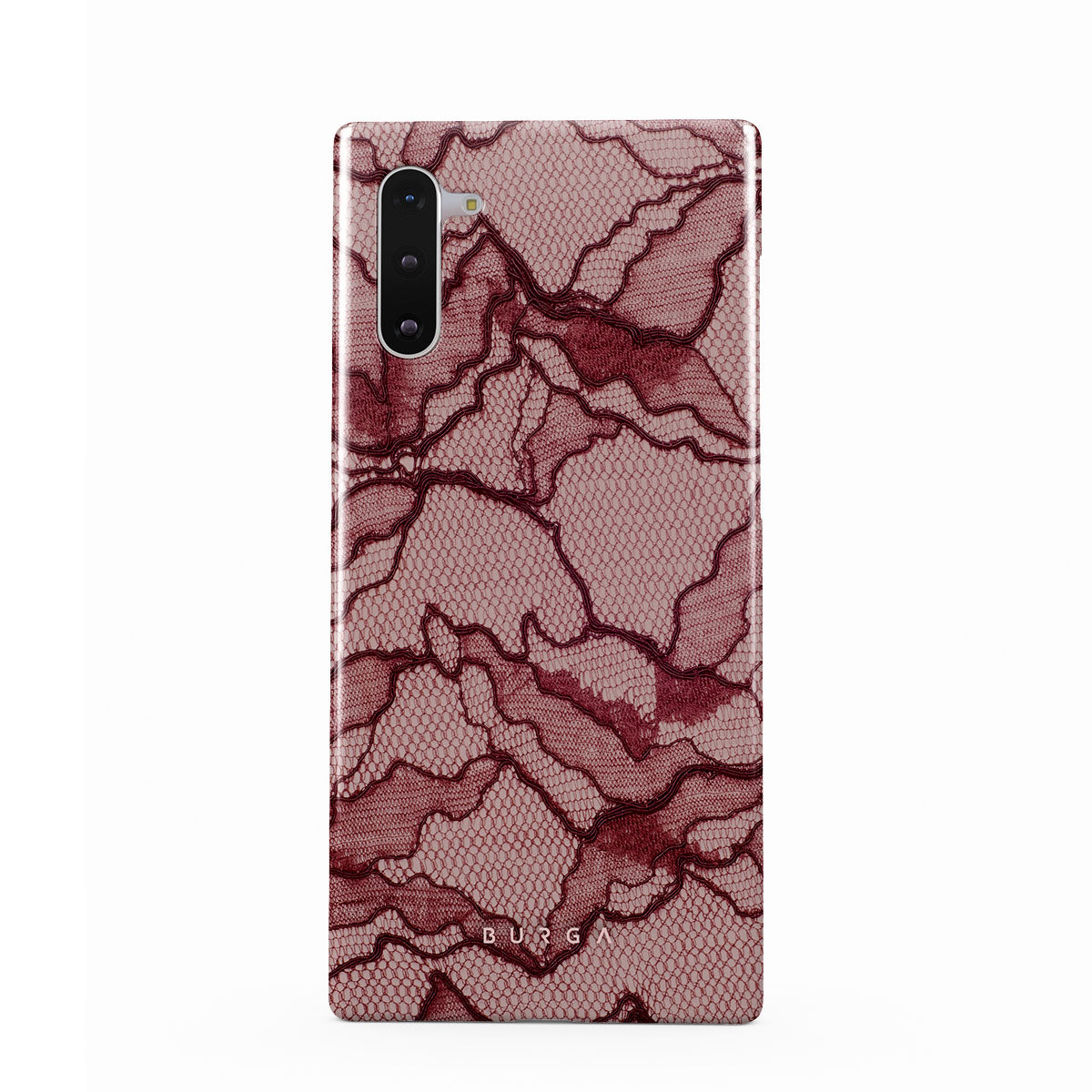 Channel your inner power with our Office Siren Samsung Galaxy Note 10 phone case design. A soft rosé backdrop and dark pink lace blend elegance and boldness, perfect for those who make quiet yet undeniable statements with confidence.