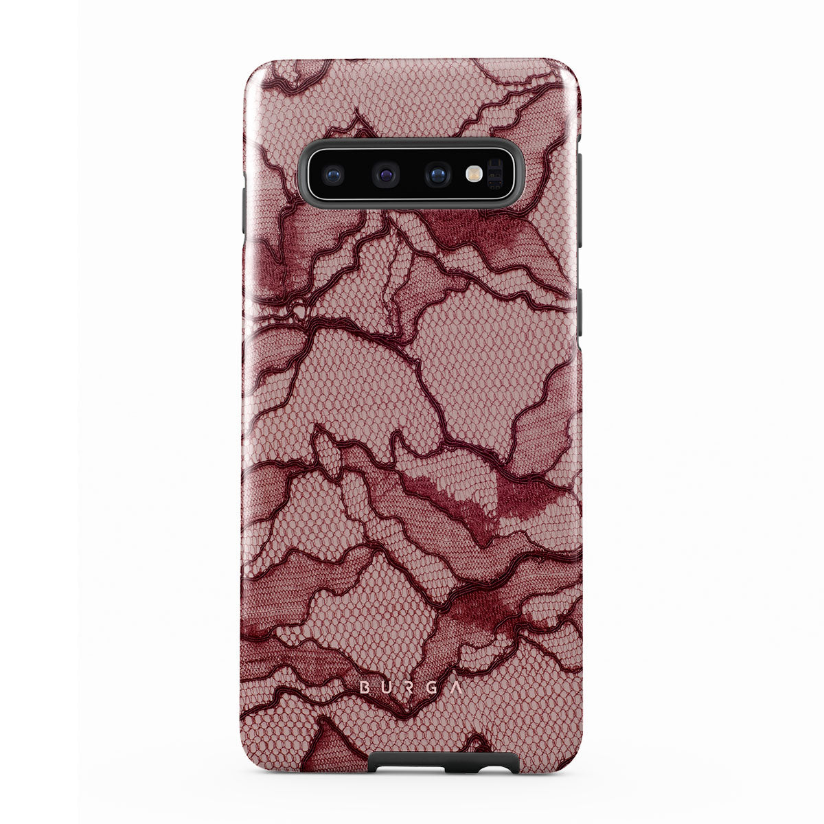 Channel your inner power with our Office Siren Samsung Galaxy S10 4G phone case design. A soft rosé backdrop and dark pink lace blend elegance and boldness, perfect for those who make quiet yet undeniable statements with confidence.