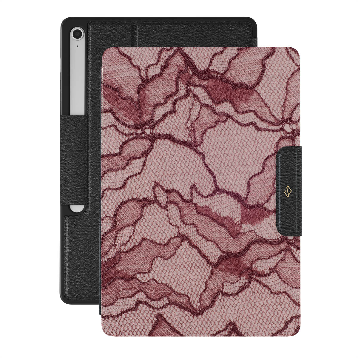 Channel your inner power with our Office Siren Samsung Galaxy Tab S10+ FE folio case design. A soft rosé backdrop and dark pink lace blend elegance and boldness, perfect for those who make quiet yet undeniable statements with confidence.