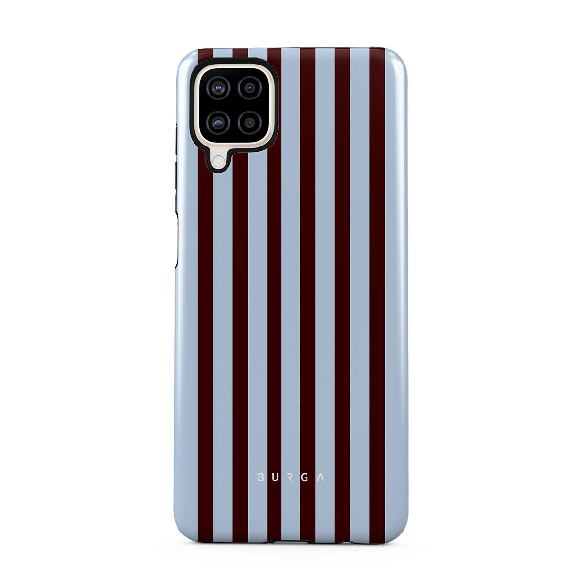 Brown, blue, and emotionally unavailable. This striped Samsung Galaxy A12 4G phone case design says, “I turned off my Slack notifications and found inner peace.” Or at least a cute aesthetic.