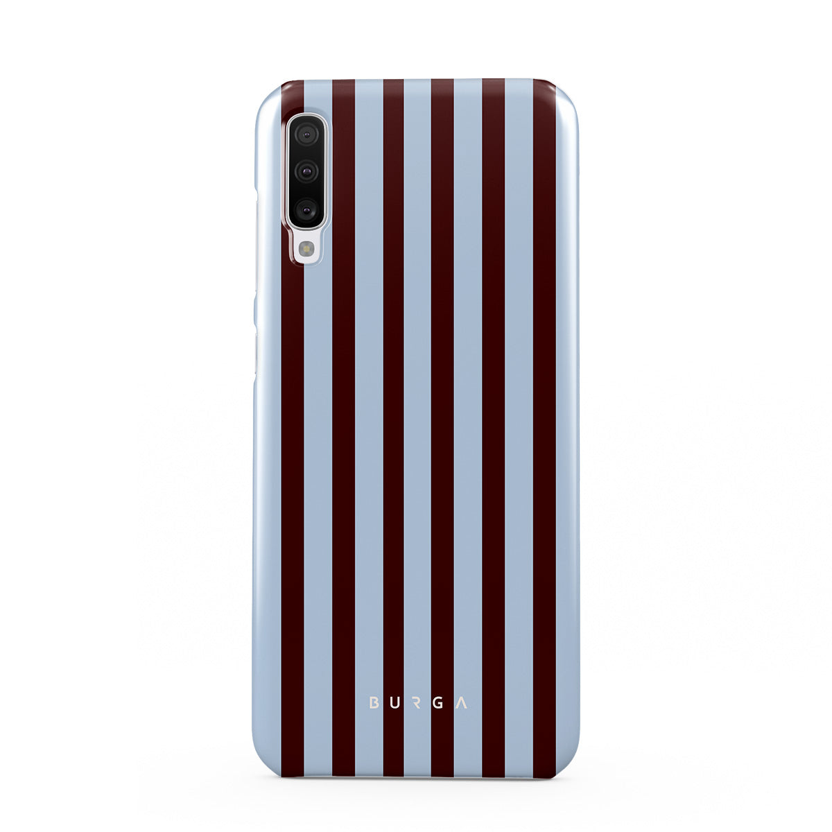 Brown, blue, and emotionally unavailable. This striped Samsung Galaxy A70 phone case design says, “I turned off my Slack notifications and found inner peace.” Or at least a cute aesthetic.