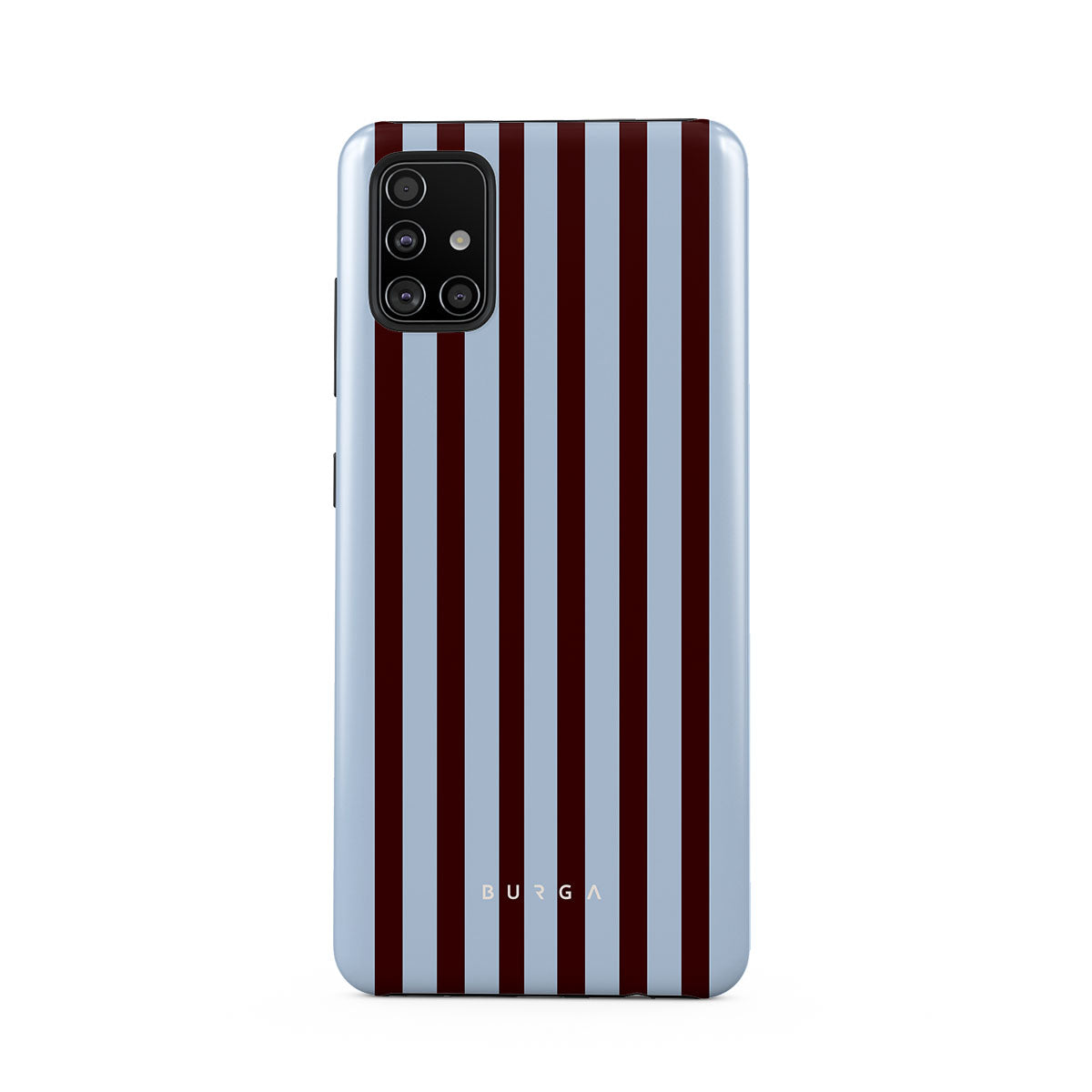 Brown, blue, and emotionally unavailable. This striped Samsung Galaxy A71 4G phone case design says, “I turned off my Slack notifications and found inner peace.” Or at least a cute aesthetic.