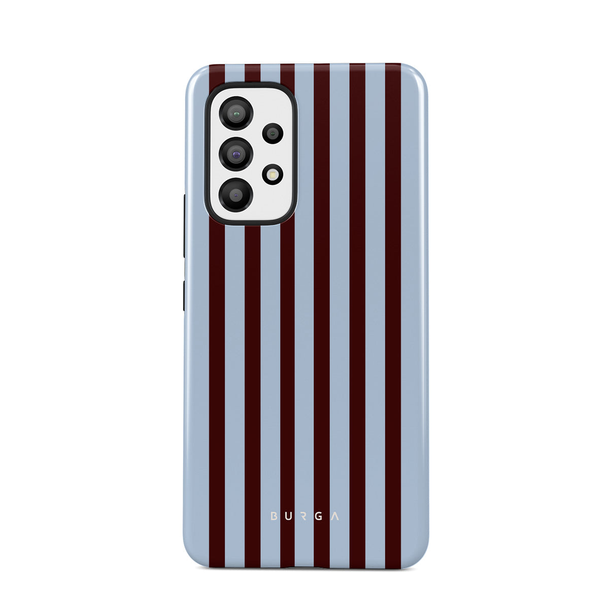 Brown, blue, and emotionally unavailable. This striped Samsung Galaxy A73 phone case design says, “I turned off my Slack notifications and found inner peace.” Or at least a cute aesthetic.