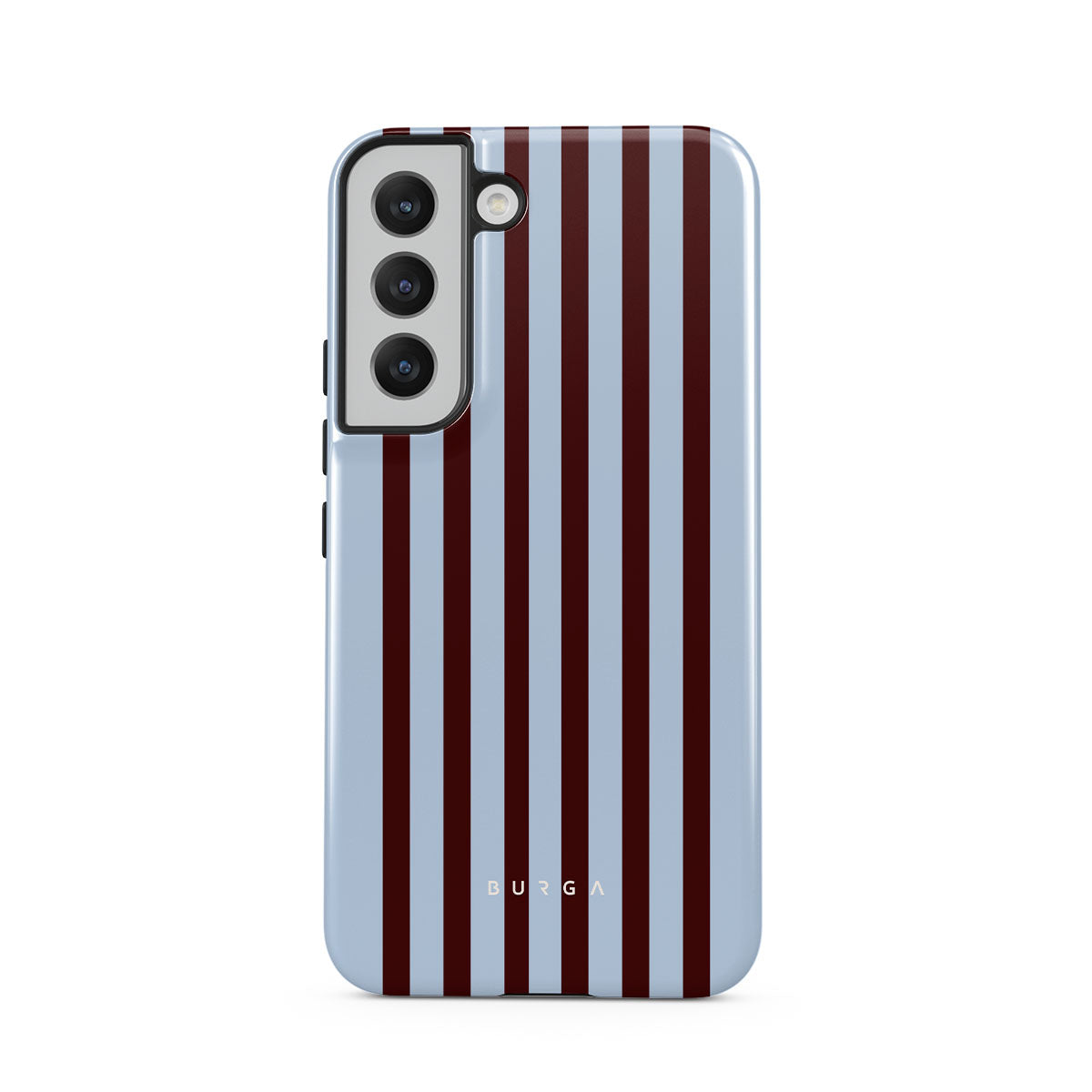 Brown, blue, and emotionally unavailable. This striped Samsung Galaxy S22 Plus phone case design says, “I turned off my Slack notifications and found inner peace.” Or at least a cute aesthetic.