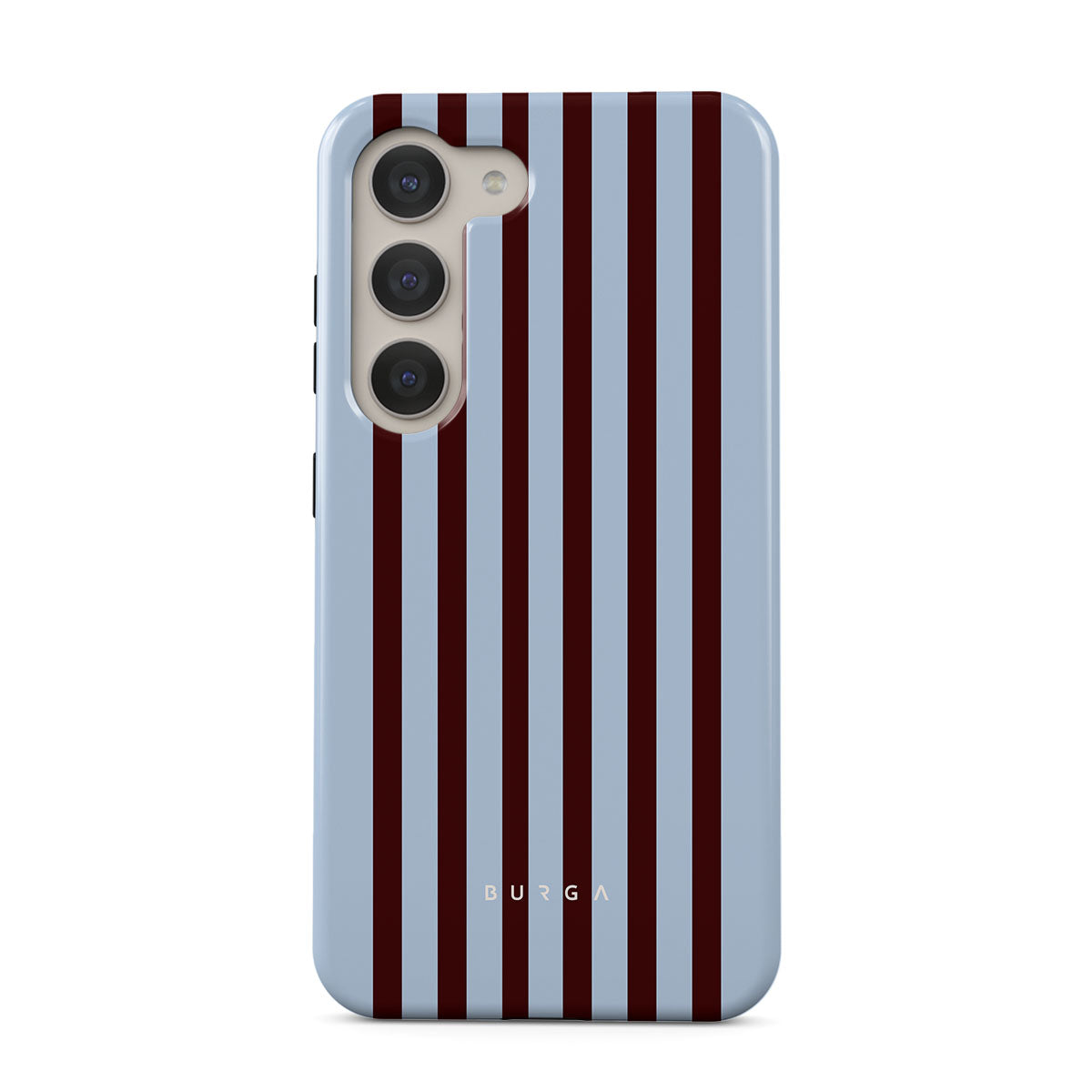 Brown, blue, and emotionally unavailable. This striped Samsung Galaxy S23 phone case design says, “I turned off my Slack notifications and found inner peace.” Or at least a cute aesthetic.