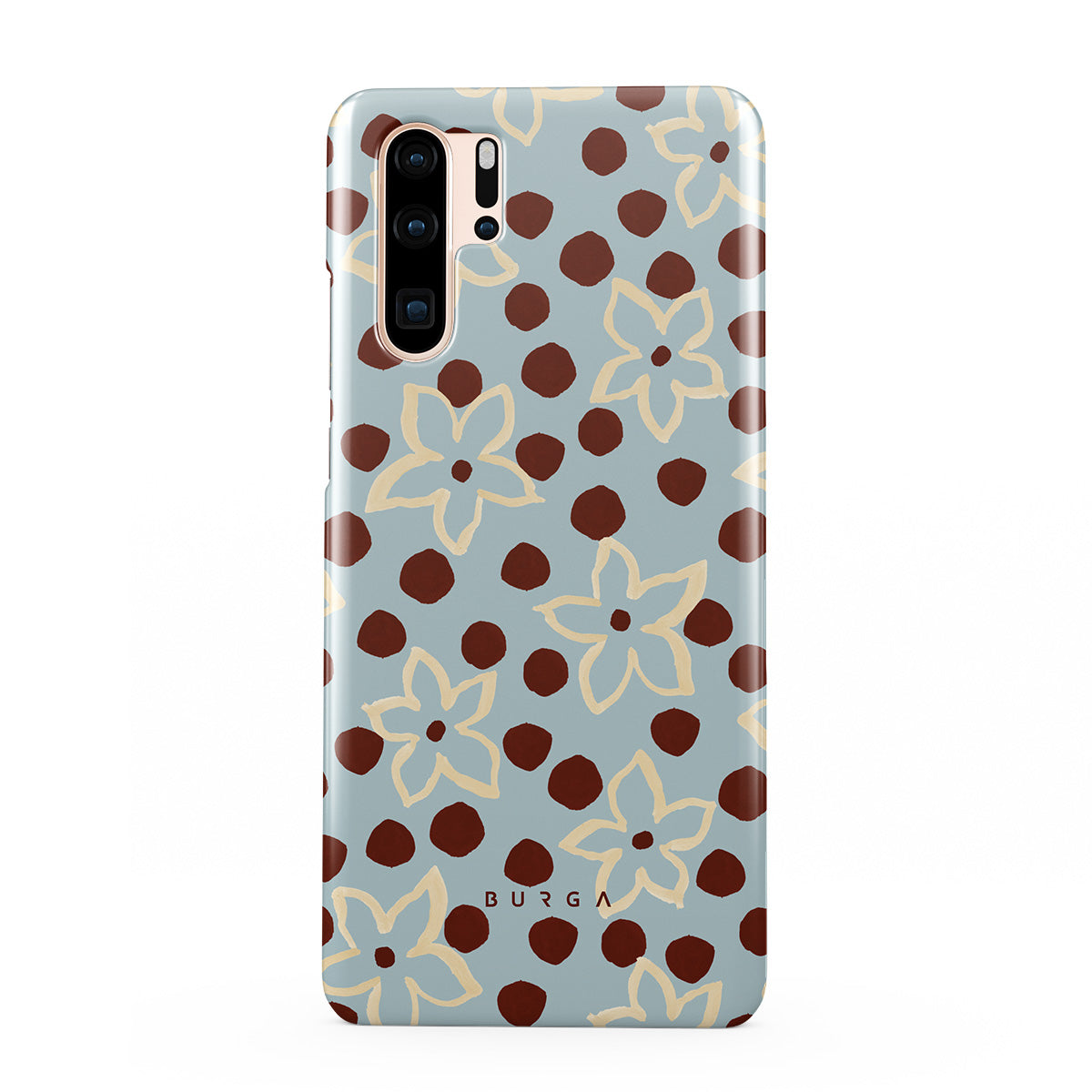 The Frutaria Huawei P30 Pro phone case design design: retro surf motel wallpaper meets vintage ceramics. The soft florals, earthy dots, and cool-toned palette give major “forgotten seaside town in the ‘70s” energy.