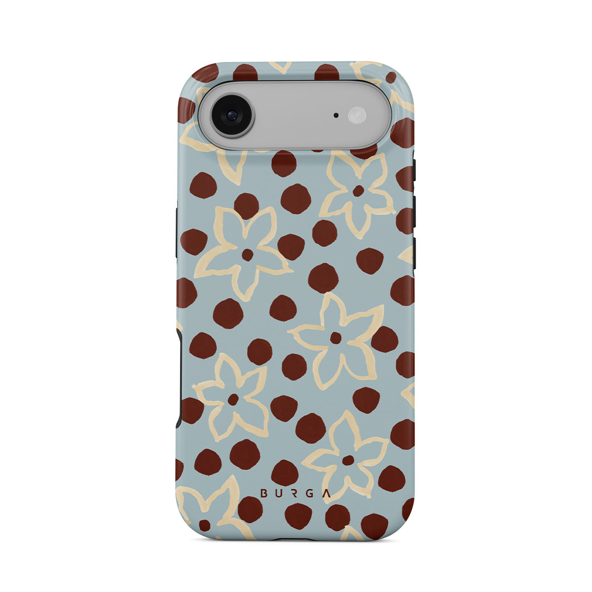 The Frutaria iPhone Air phone case design design: retro surf motel wallpaper meets vintage ceramics. The soft florals, earthy dots, and cool-toned palette give major “forgotten seaside town in the ‘70s” energy.