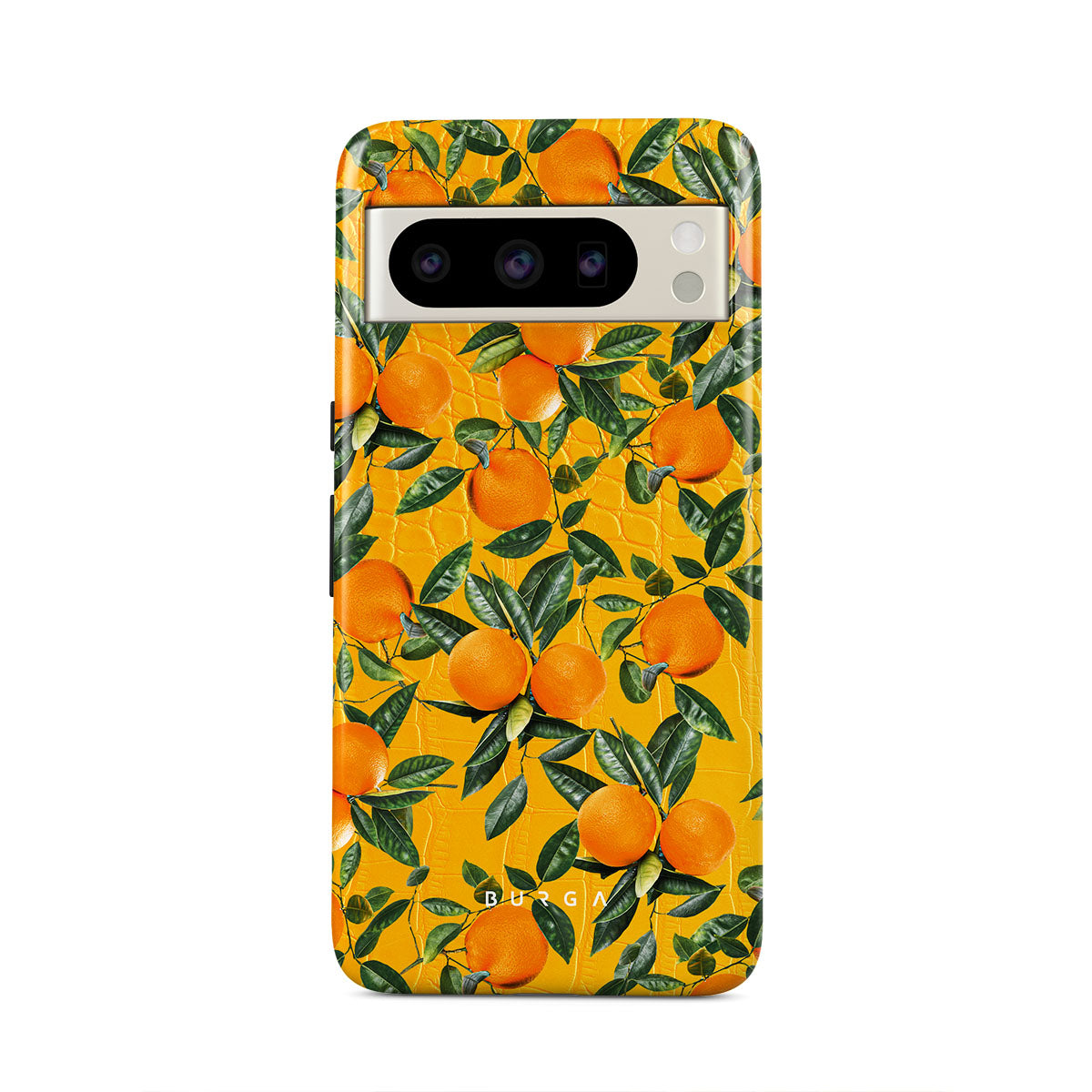 Orange Lemonade Google Pixel 8 Pro phone case showcases a unique combination of vibrant orange croco design with plenty of mouth-watering oranges on top. With this energetic design, protect your phone and keep your spirits up.