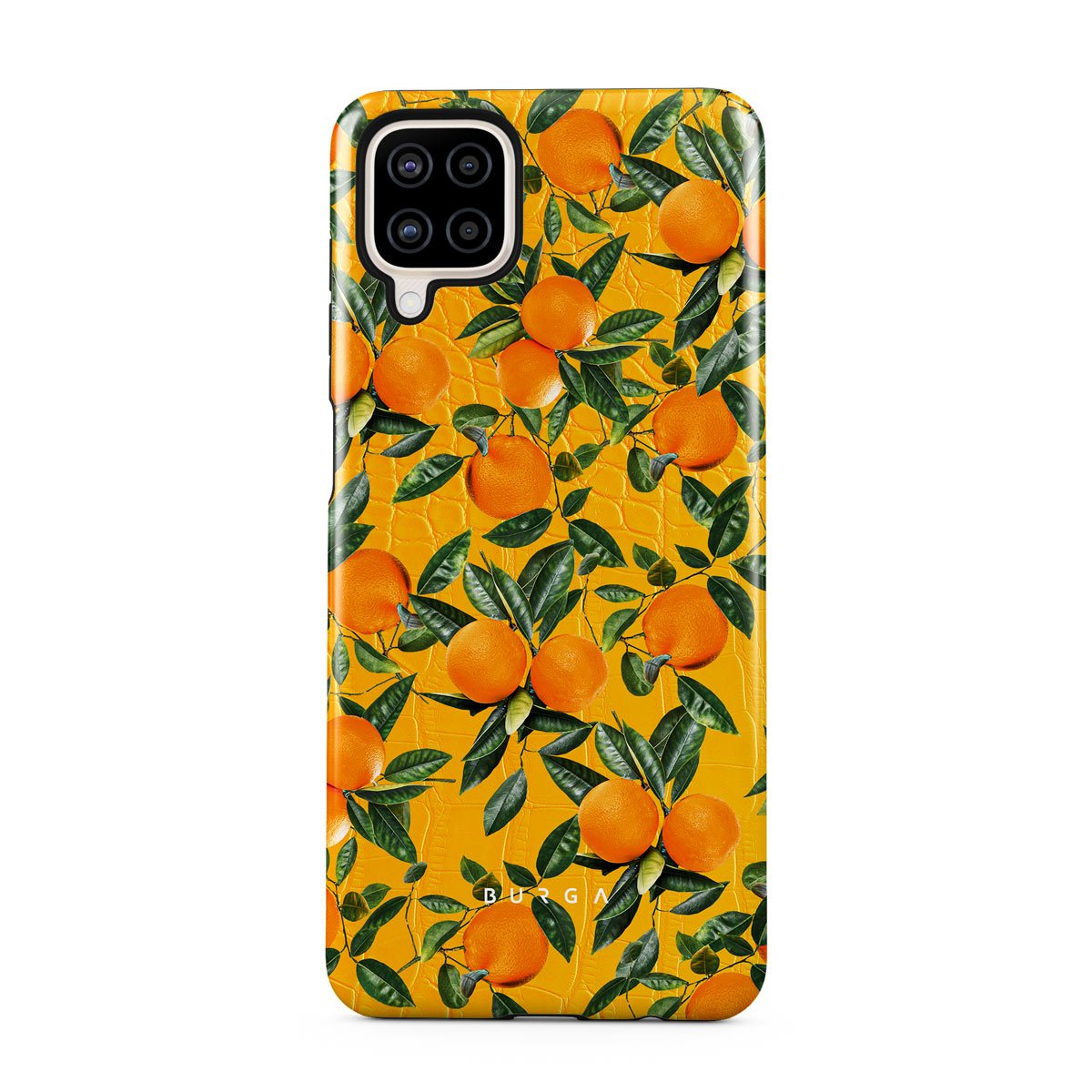 Orange Lemonade Samsung Galaxy A12 4G phone case showcases a unique combination of vibrant orange croco design with plenty of mouth-watering oranges on top. With this energetic design, protect your phone and keep your spirits up.