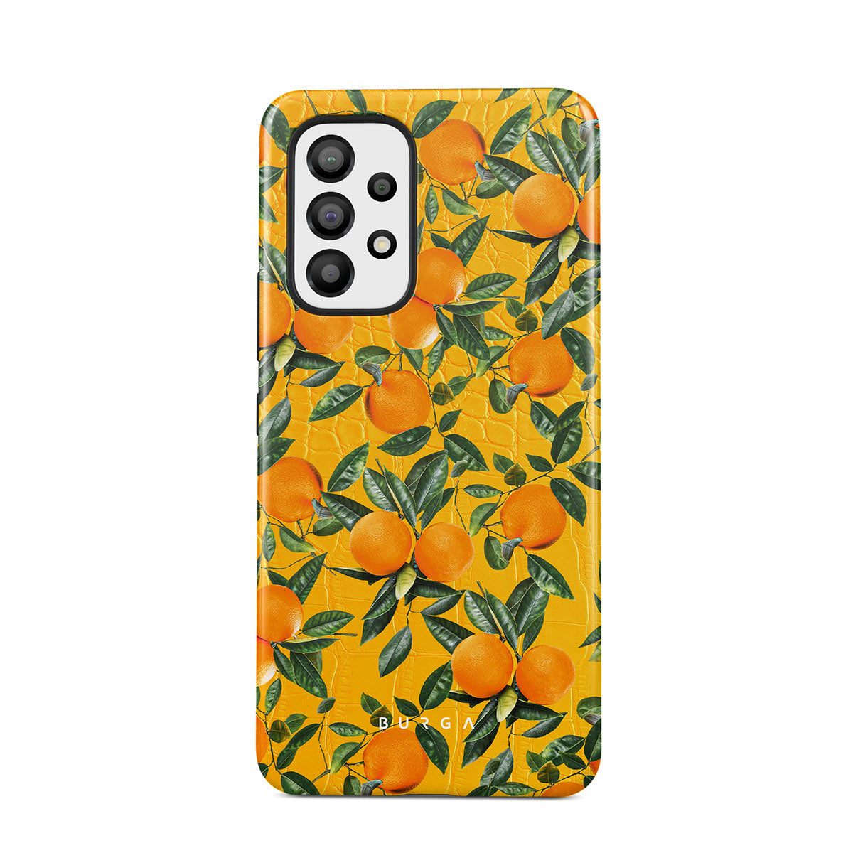 Orange Lemonade Samsung Galaxy A33 phone case showcases a unique combination of vibrant orange croco design with plenty of mouth-watering oranges on top. With this energetic design, protect your phone and keep your spirits up.