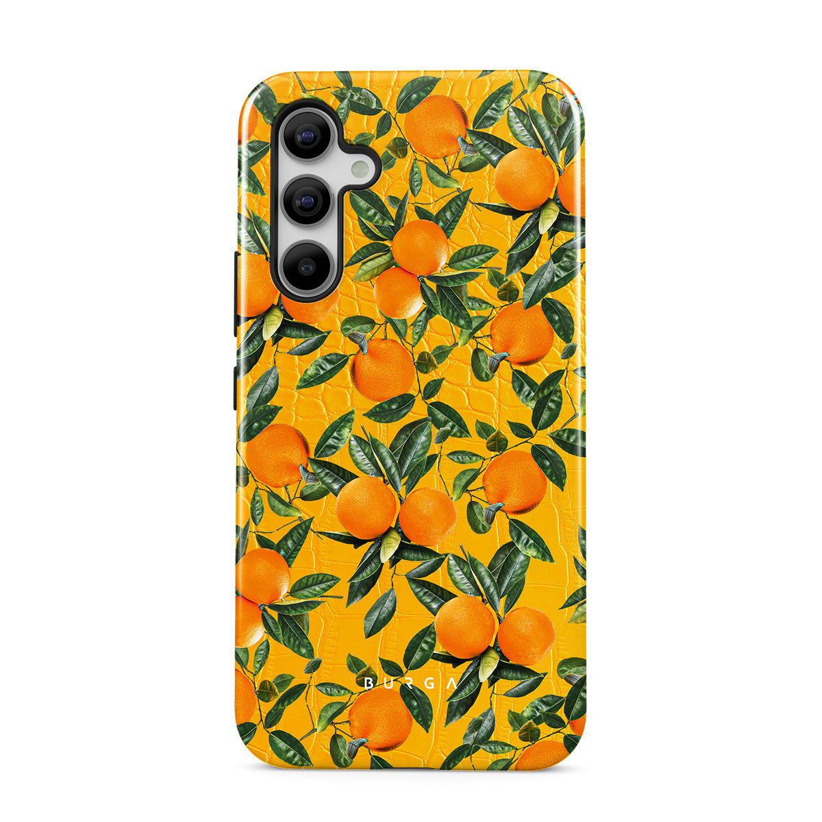 Orange Lemonade Samsung Galaxy A54 phone case showcases a unique combination of vibrant orange croco design with plenty of mouth-watering oranges on top. With this energetic design, protect your phone and keep your spirits up.