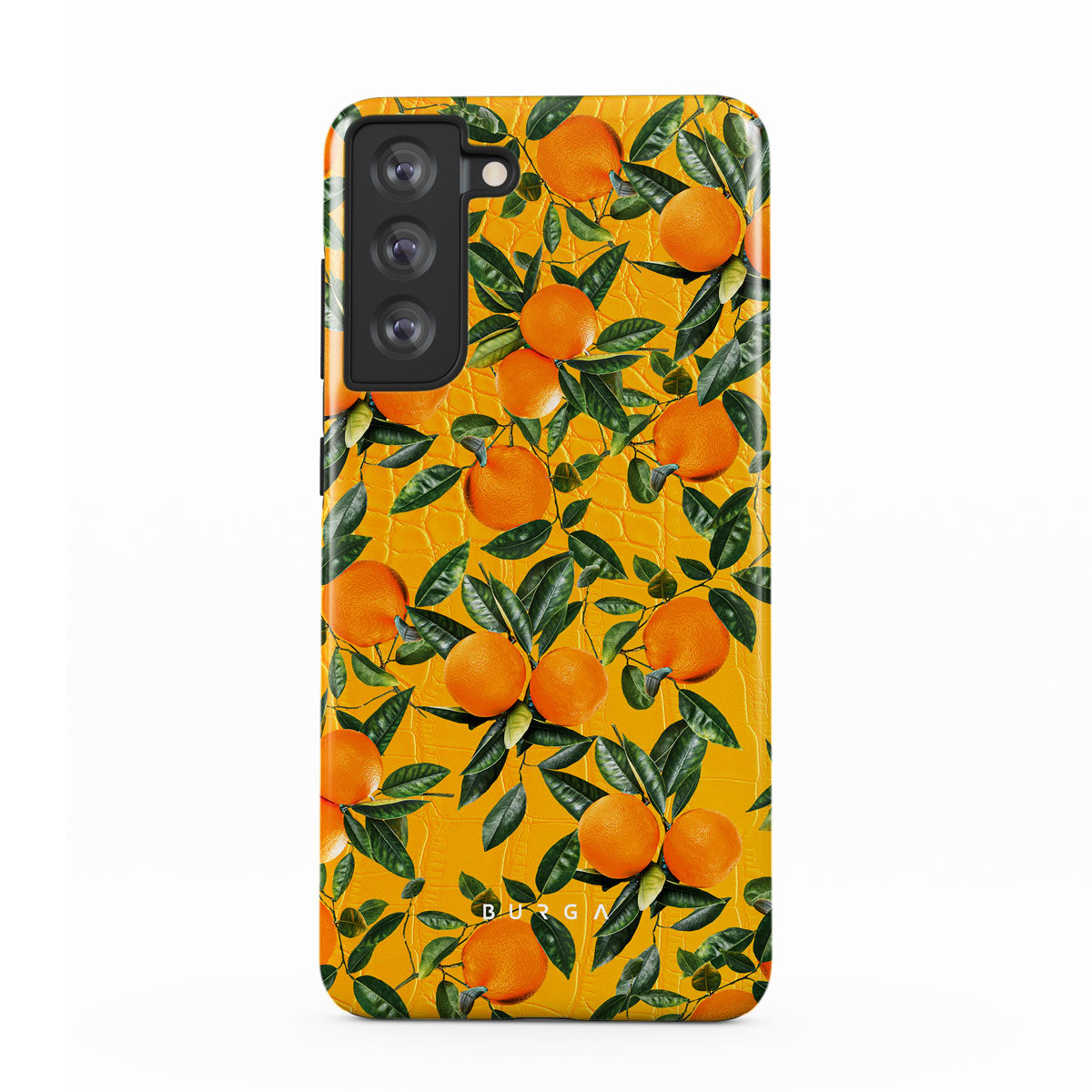 Orange Lemonade Samsung Galaxy S21 FE phone case showcases a unique combination of vibrant orange croco design with plenty of mouth-watering oranges on top. With this energetic design, protect your phone and keep your spirits up.
