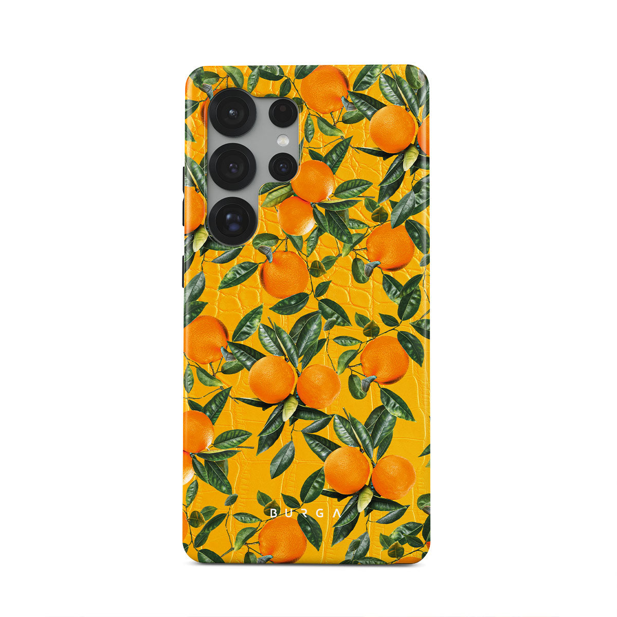 Orange Lemonade Samsung Galaxy S25 Ultra phone case showcases a unique combination of vibrant orange croco design with plenty of mouth-watering oranges on top. With this energetic design, protect your phone and keep your spirits up.