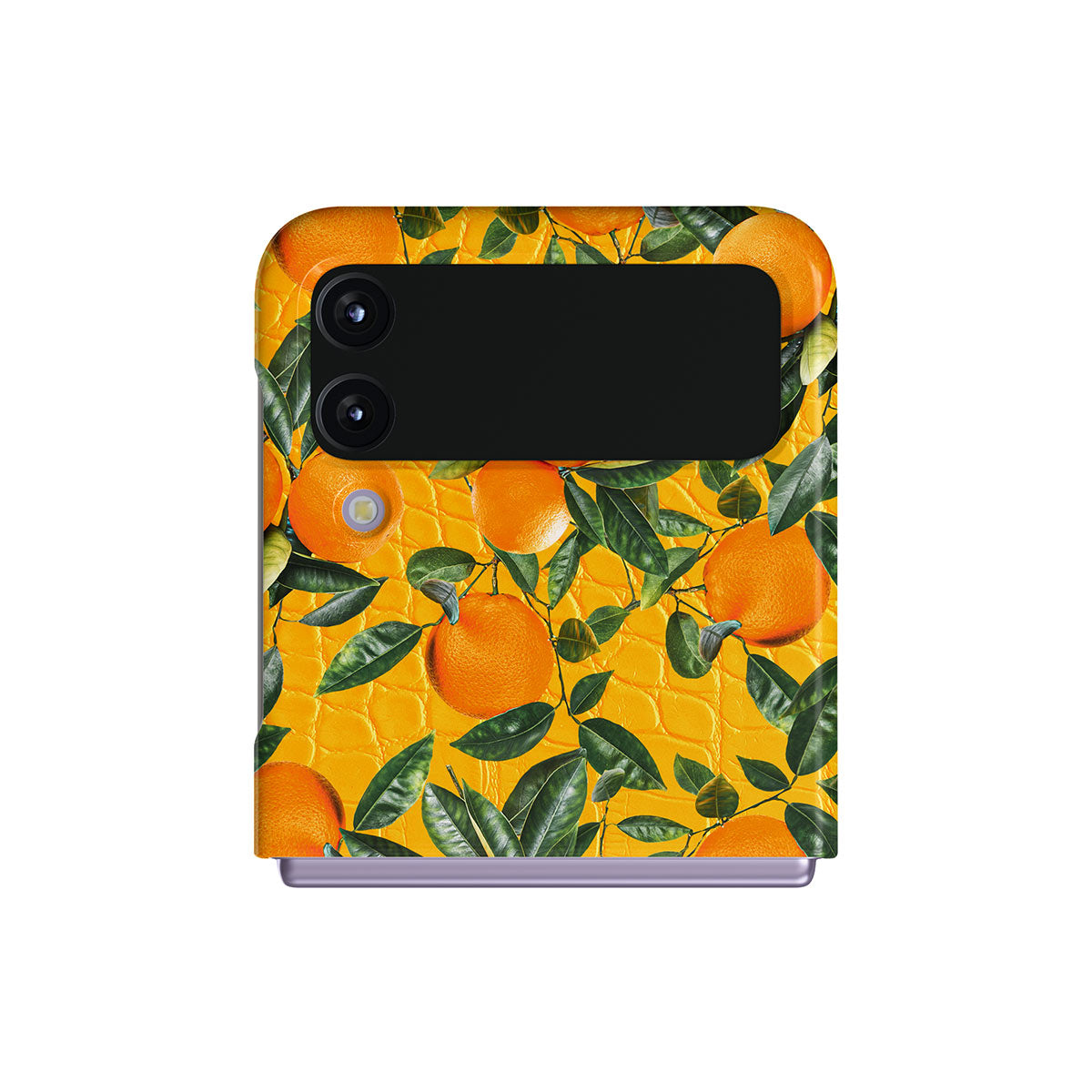 Orange Lemonade Samsung Galaxy Z Flip 4 phone case showcases a unique combination of vibrant orange croco design with plenty of mouth-watering oranges on top. With this energetic design, protect your phone and keep your spirits up.