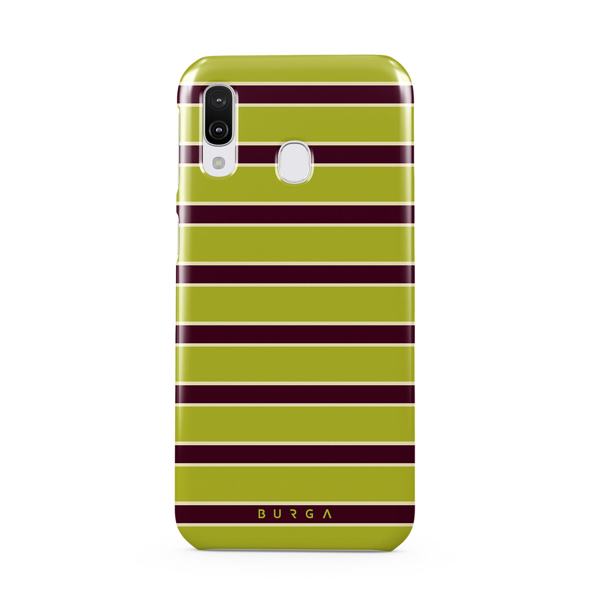 This design features: thick horizontal stripes in lime green and burgundy .