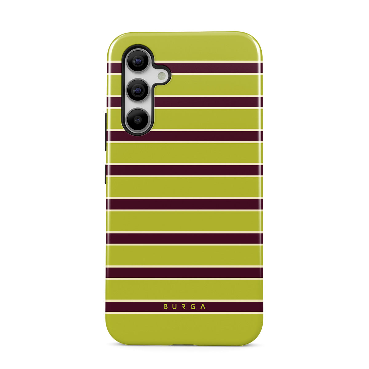 This design features: thick horizontal stripes in lime green and burgundy .