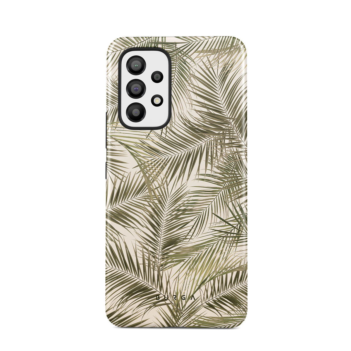 Some find happiness in the endless possibilities, and others find joy in the moments of relief. Can it be that you will find your happy place surrounded by palm leaves? Try our unique Samsung Galaxy A72 phone case design with bright palm leaves and add a statement to your style.
