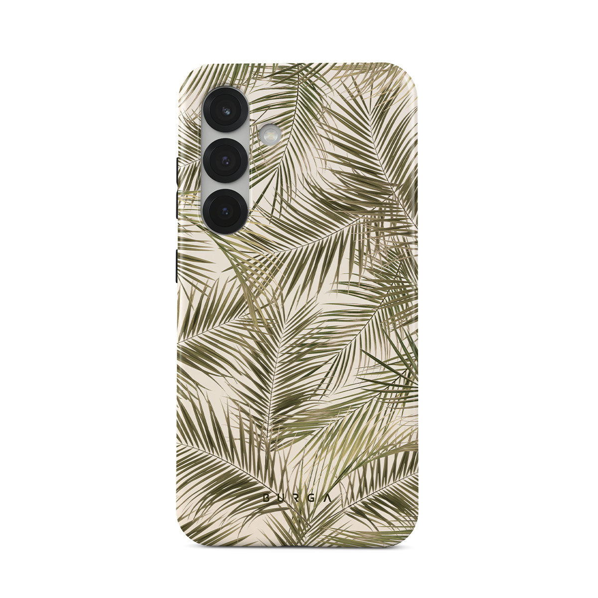 Some find happiness in the endless possibilities, and others find joy in the moments of relief. Can it be that you will find your happy place surrounded by palm leaves? Try our unique Samsung Galaxy S25 Plus phone case design with bright palm leaves and add a statement to your style.