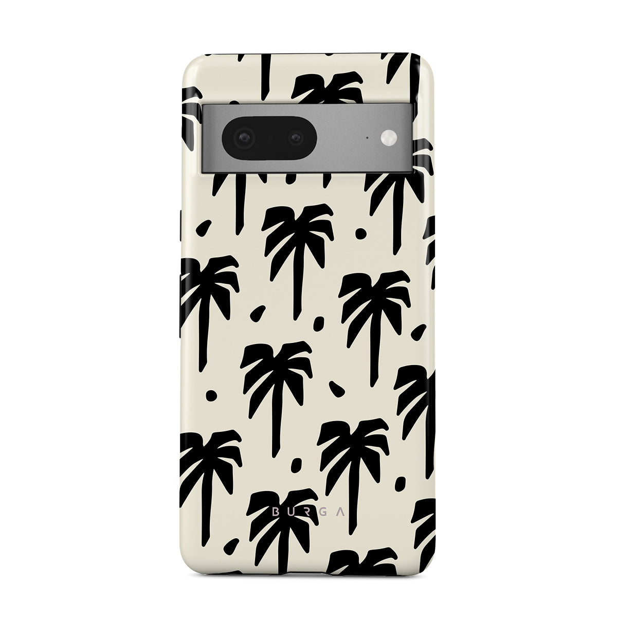 A peaceful haven right at your fingertips. The design contrasts black palm silhouettes against a calming light backdrop. Our Paraíso Google Pixel 7a phone case is your passport to an everlasting tropical escape.
