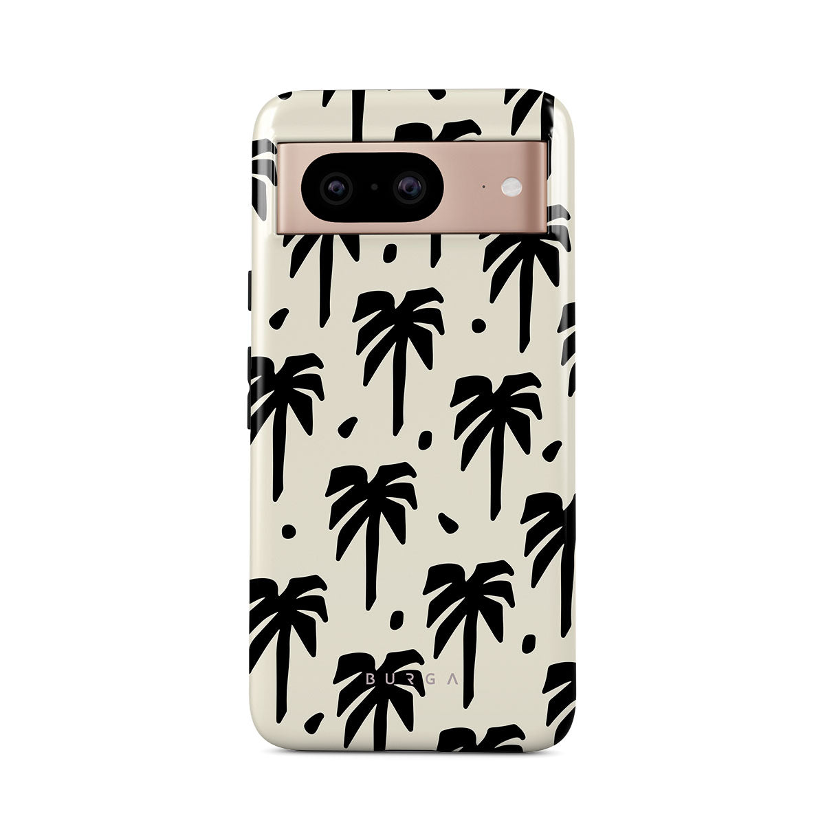 A peaceful haven right at your fingertips. The design contrasts black palm silhouettes against a calming light backdrop. Our Paraíso Google Pixel 8 phone case is your passport to an everlasting tropical escape.