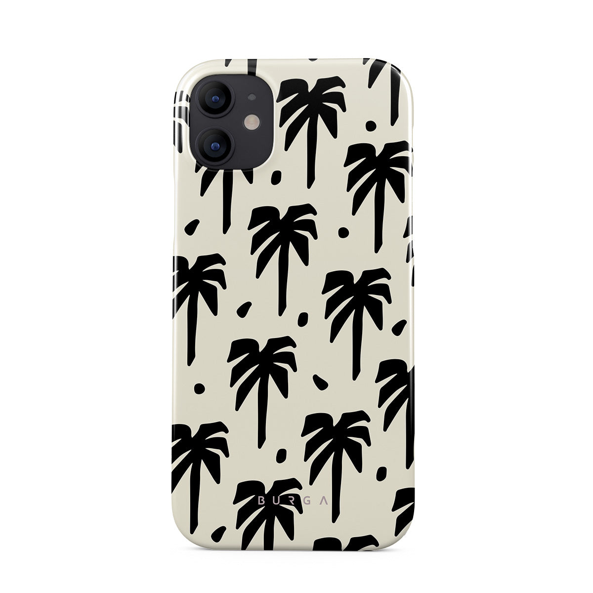 A peaceful haven right at your fingertips. The design contrasts black palm silhouettes against a calming light backdrop. Our Paraíso iPhone 12 Mini phone case is your passport to an everlasting tropical escape.